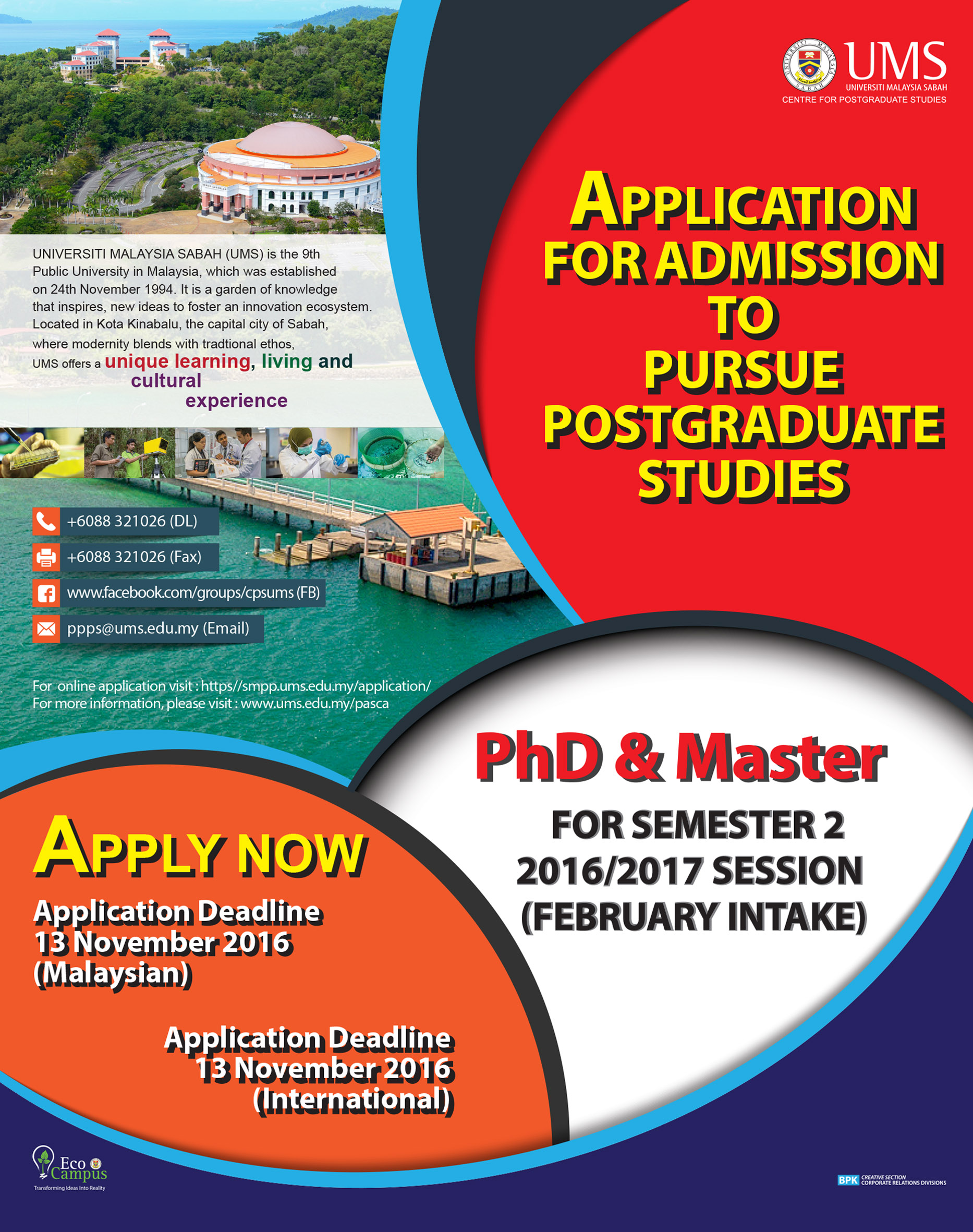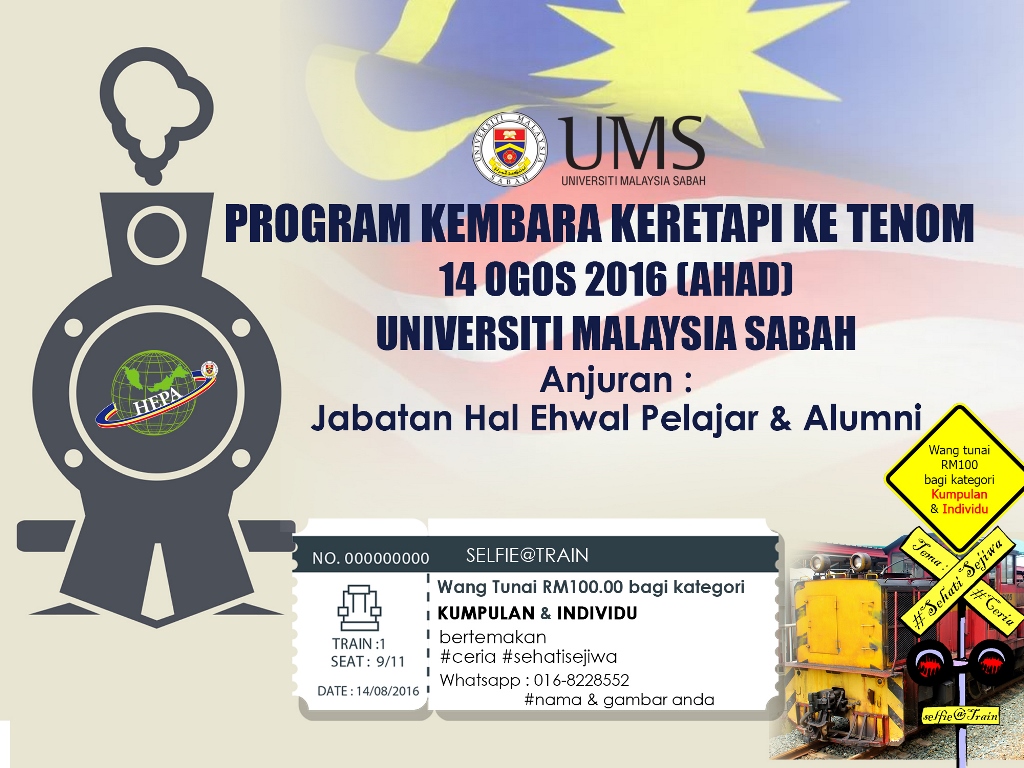 Borang pertandingan dan maklumat lain boleh diperolehi di laman Facebook Larian Merdeka 10km ke Puncak UMS dan juga di pejabat pentadbiran UMS.