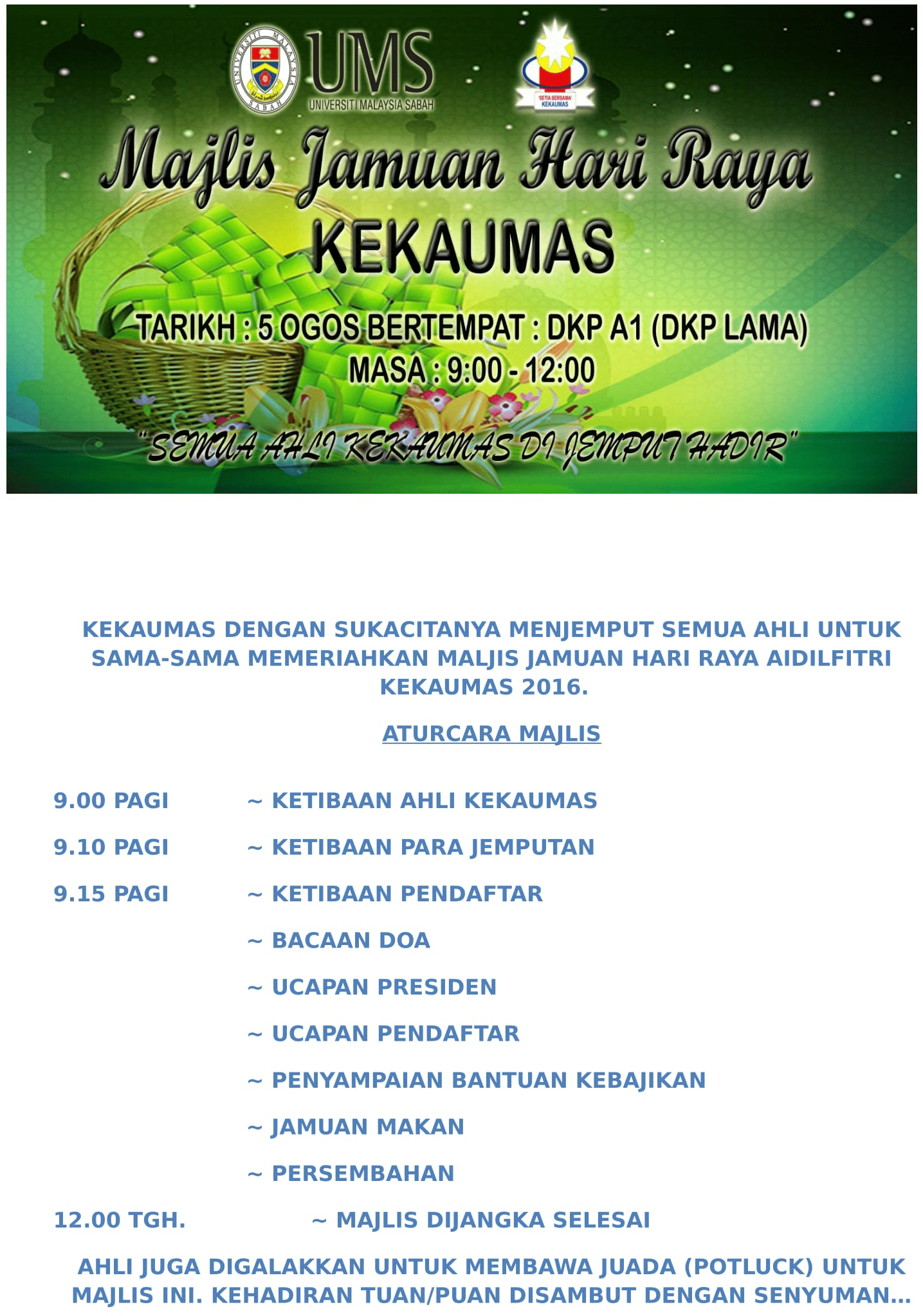 Pengumuman Daripada | : Kesatuan Kakitangan Am Universiti Malaysia Sabah (KEKAUMAS) |