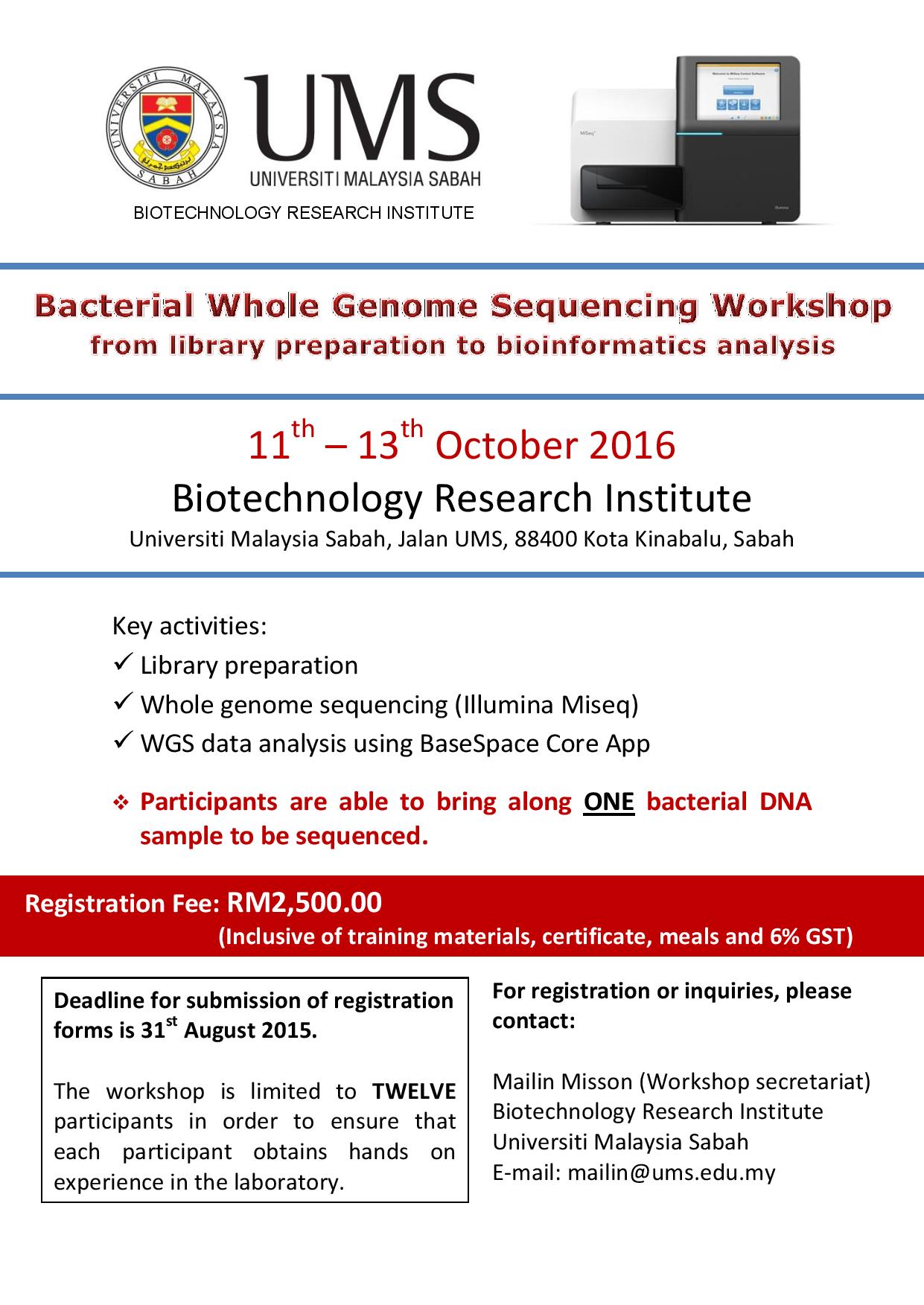 SUBJECT | : BENGKEL "BACTERIAL WHOLE GENOME SEQUENCING WORKSHOP" 11-13 OKTOBER 2016 |