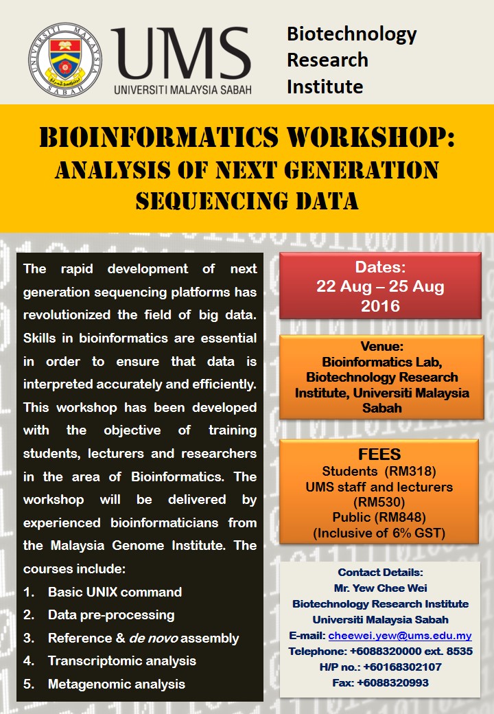 SUBJECT | : BENGKEL BIOINFORMATIK "ANALYSIS OF NEXT GENERATION SEQUENCING DATA" 22-25 OGOS 2016 |