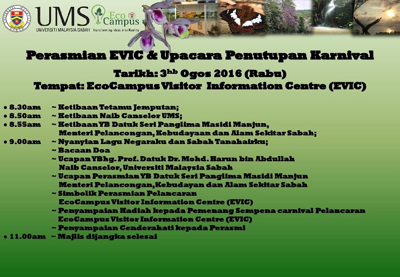 Kunjungan Audit Pematuhan oleh pihak SIRIM pada 29 Ogos 2016 sehingga 30 Ogos 2016. Sehubungan itu, mohon pihak JFPIU untuk mengambil tindakan terhadap sebarang Ketidakakuran (NCR), Cadangan Penambahbaikan, Pemerhatian hasil Audit Dalam dan Audit SIRIM yang lepas. Ini sebagai persediaan memastikan UMS mematuhi dan mengamalkan Sistem Pengurusan Kualiti mengikut standard MS ISO 9001:2008.