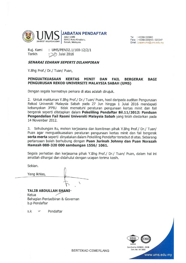 Segala kerjasama dan sokongan tuan/puan amatlah dihargai dan dahului dengan ucapan jutaan terima kasih.
