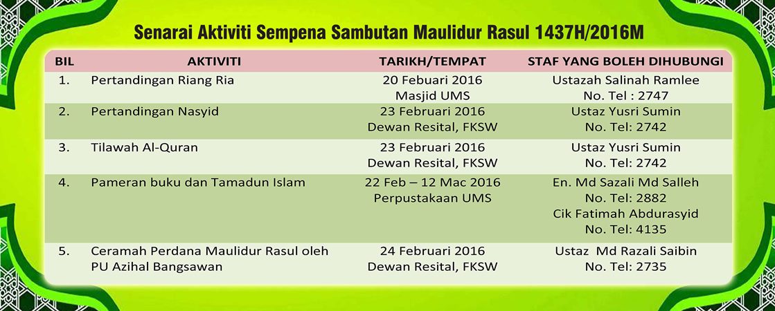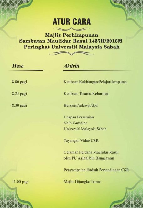 SUBJEK | : MAJLIS PERHIMPUNAN SAMBUTAN MAULIDUR RASUL 1437H/2016M |