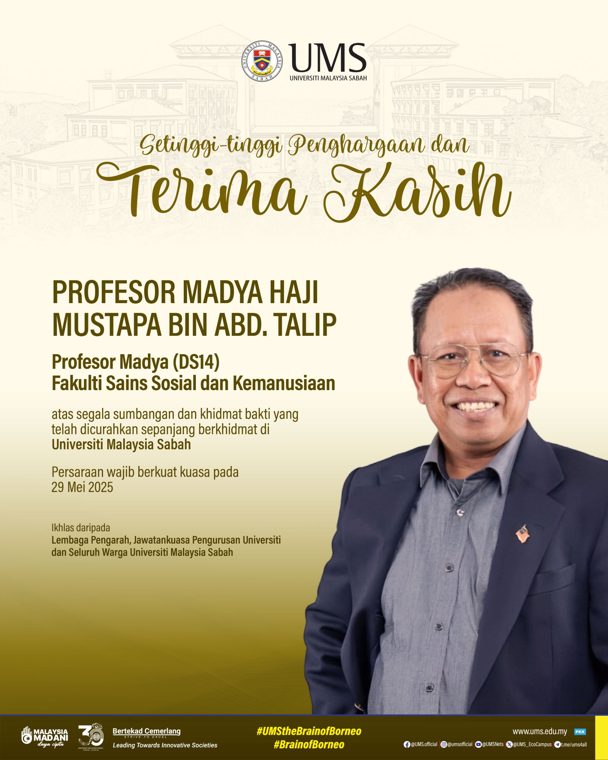 Sekalung Penghargaan dan Ucapan Terima Kasih kepada Kakitangan UMS yang Telah Bersara