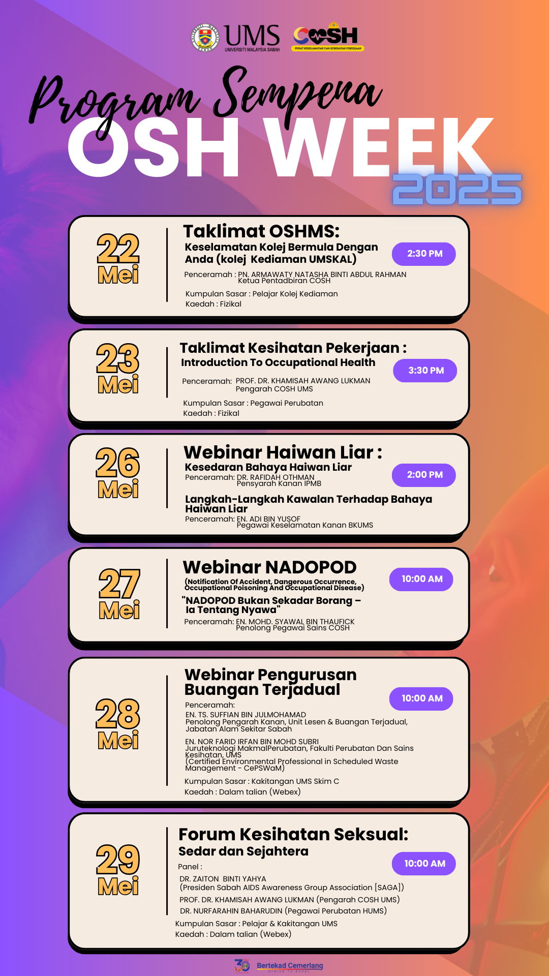 Pengumuman Daripada: Pusat Keselamatan dan Kesihatan Pekerjaan
