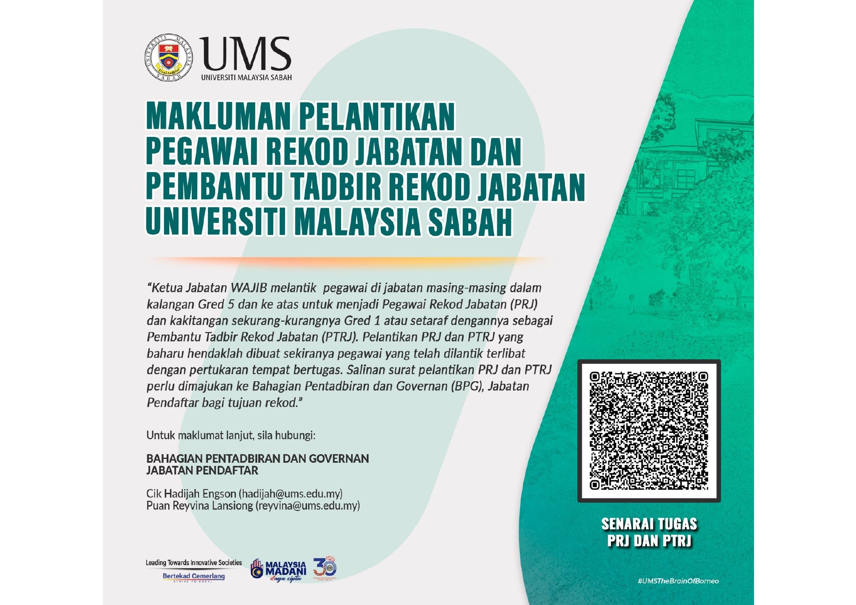 Pengumuman Daripada: Bahagian Pentadbiran dan Governan, Jabatan Pendaftar