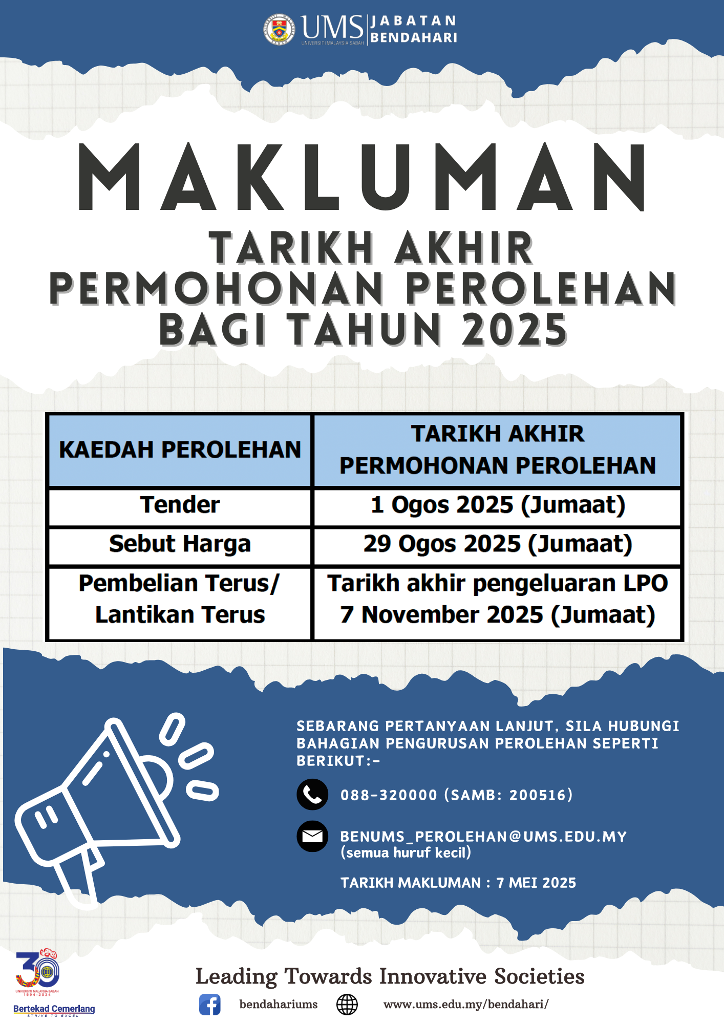 Pengumuman Daripada: Bahagian Pengurusan Perolehan, Jabatan Bendahari