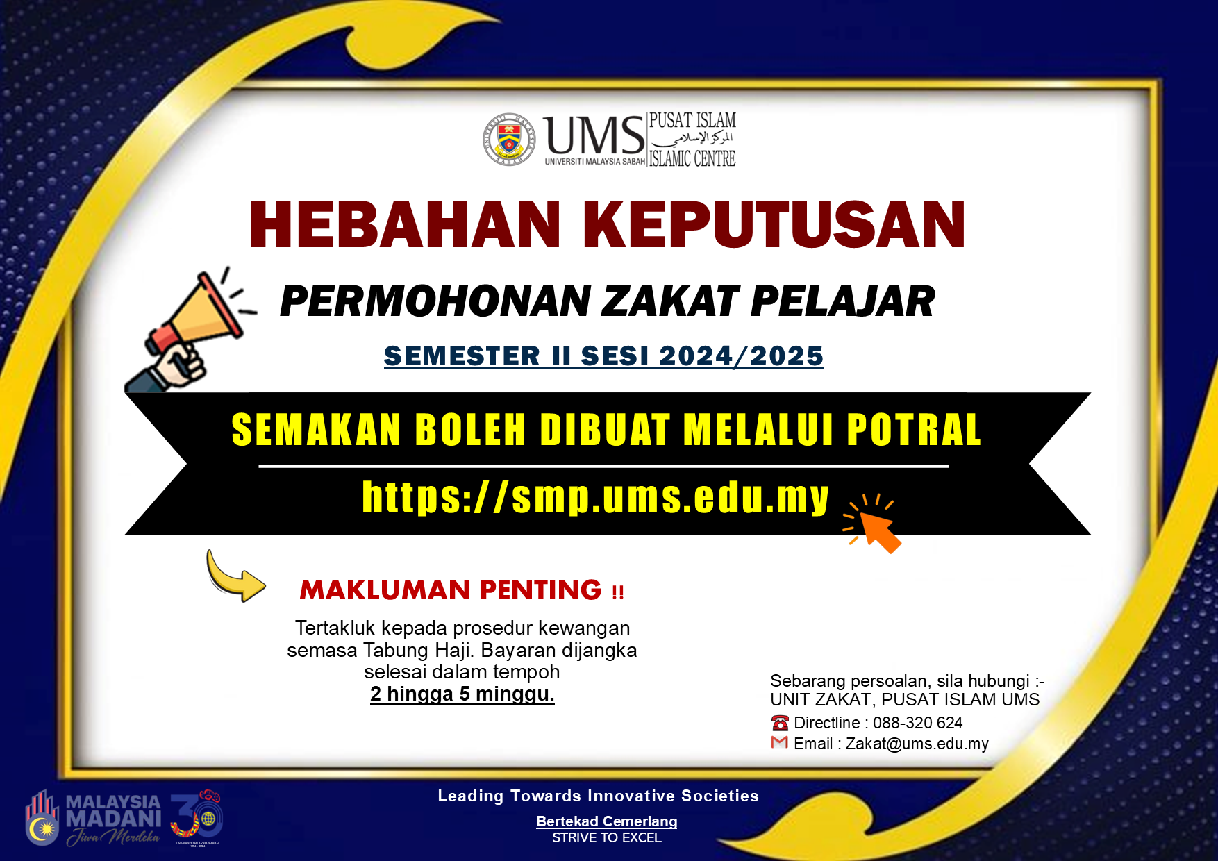 Pengumuman Daripada: Sektor Pendidikan dan Zakat, Pusat Islam UMS