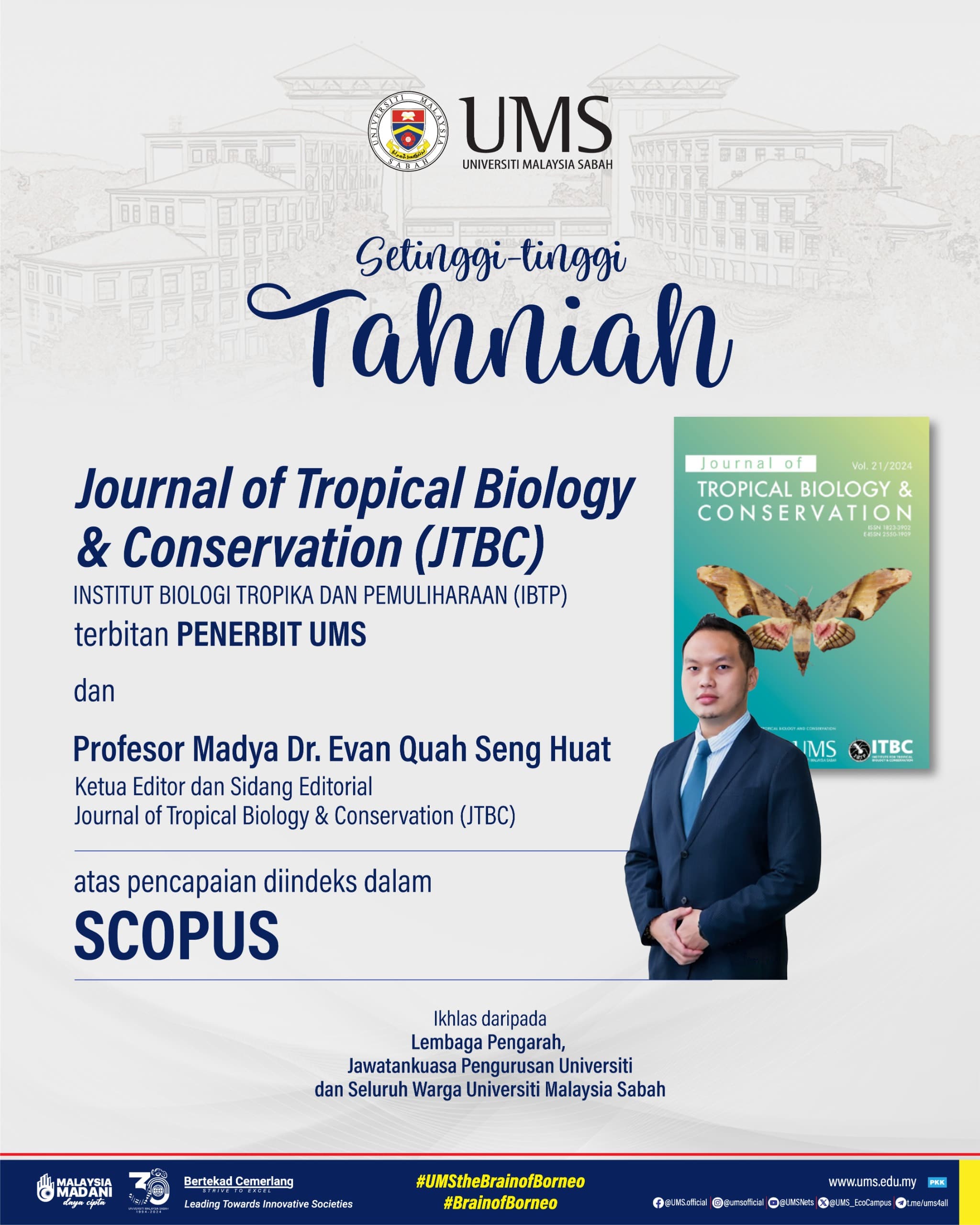We are pleased to invite you to participate in the International Conference on Borneo Sustainability 2025 (ICBS 2025), proudly hosted by Universiti Malaysia Sabah (UMS) under the Konsortium Universiti Universitas Borneo (KUUB) initiative. This prestigious four-day conference will take place from 9 to 12 September 2025 at UMS, providing an invaluable platform for researchers, academics, and industry leaders to connect and collaborate.
