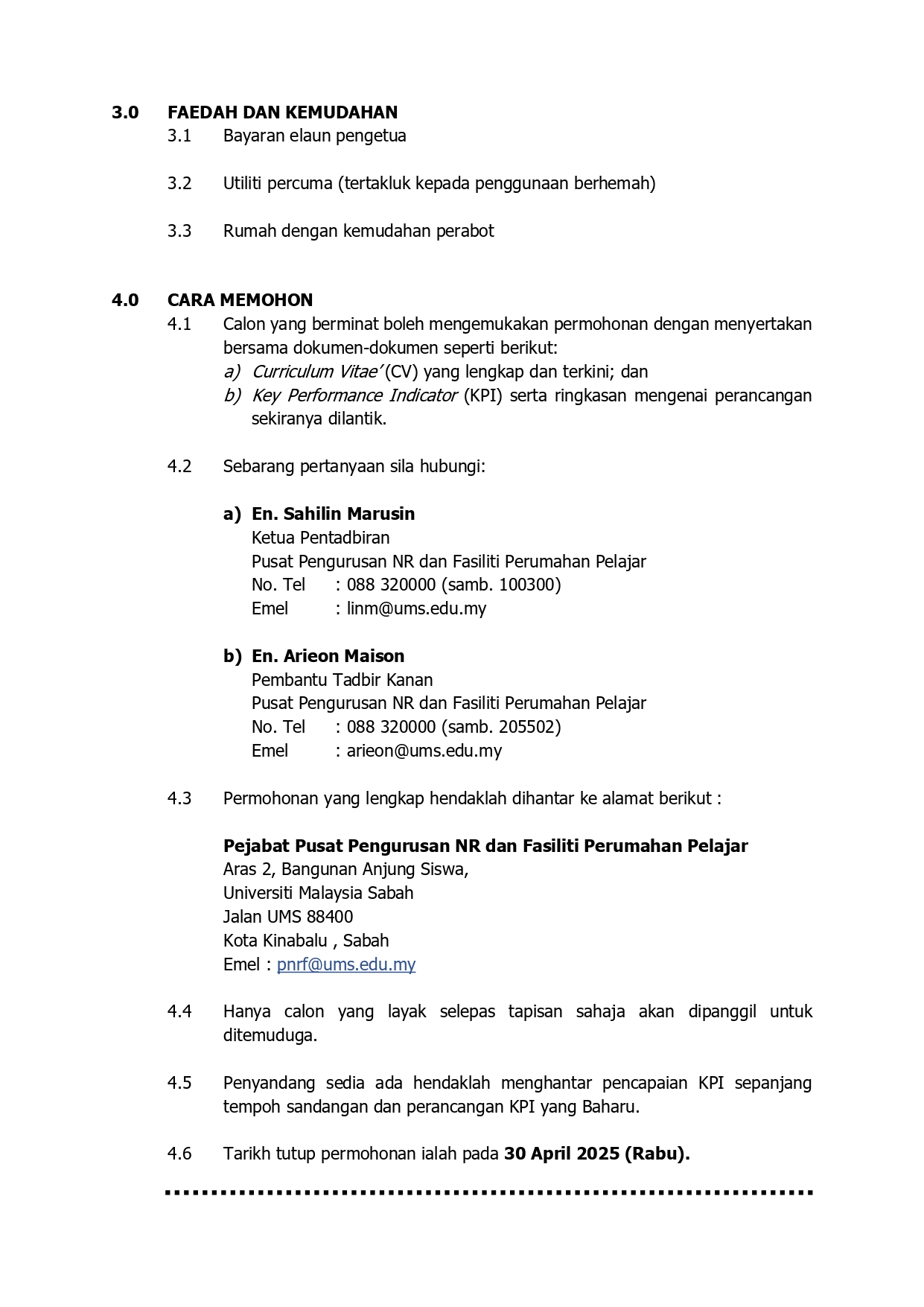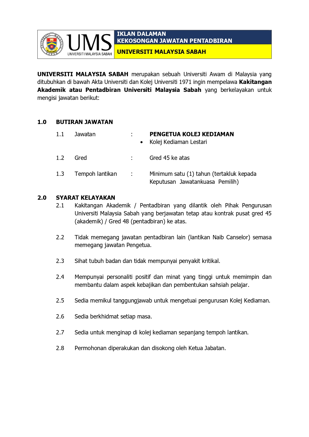 Pengumuman Daripada: Sektor Pendidikan dan Zakat, Pusat Islam UMS