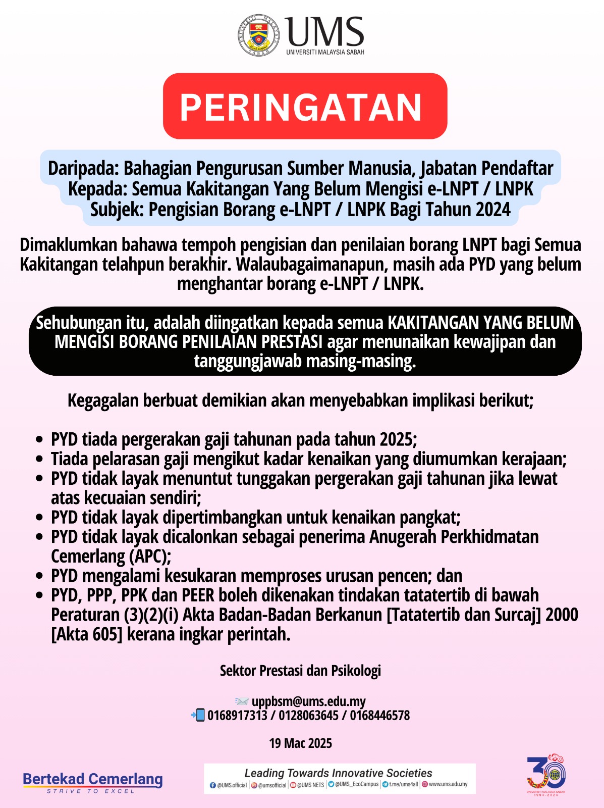 Pengumuman Daripada: Bahagian Pengurusan Sumber Manusia