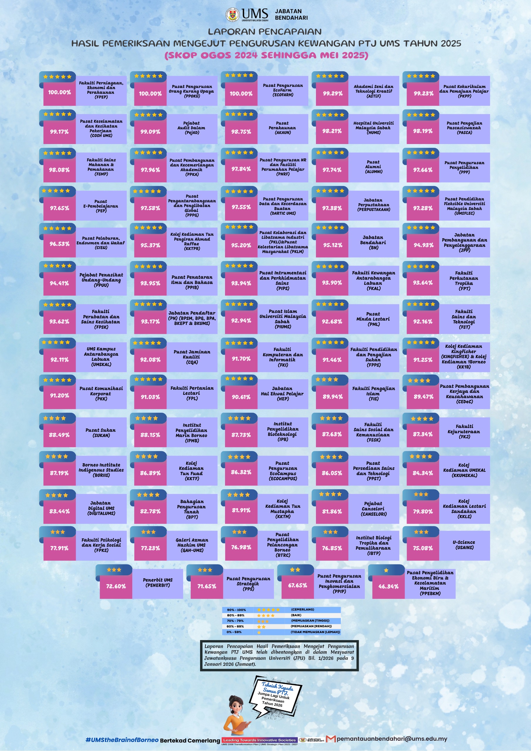 | Ringkasan Pencapaian (Markah) PTJ Bagi Aktiviti Pemeriksaan Mengejut Tahun 2025 |