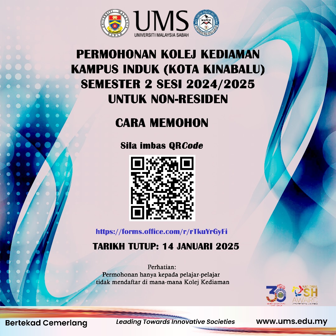 Permohonan Kolej Kediaman UMS (Kampus Induk Kota Kinabalu) Semester 2 Sesi 2024/2025 Untuk Non-Residen