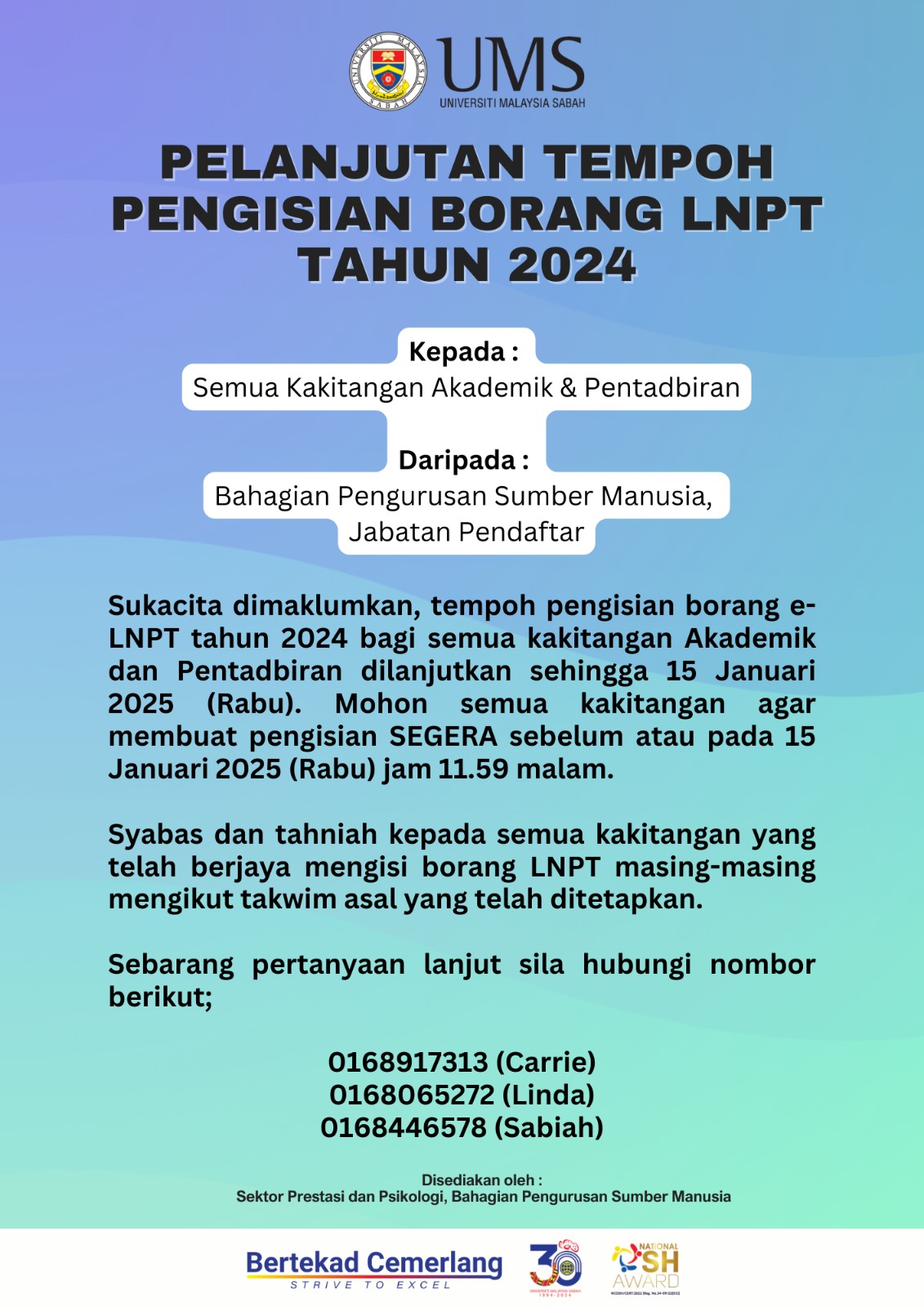 Pengumuman Daripada: Bahagian Pengurusan Sumber Manusia