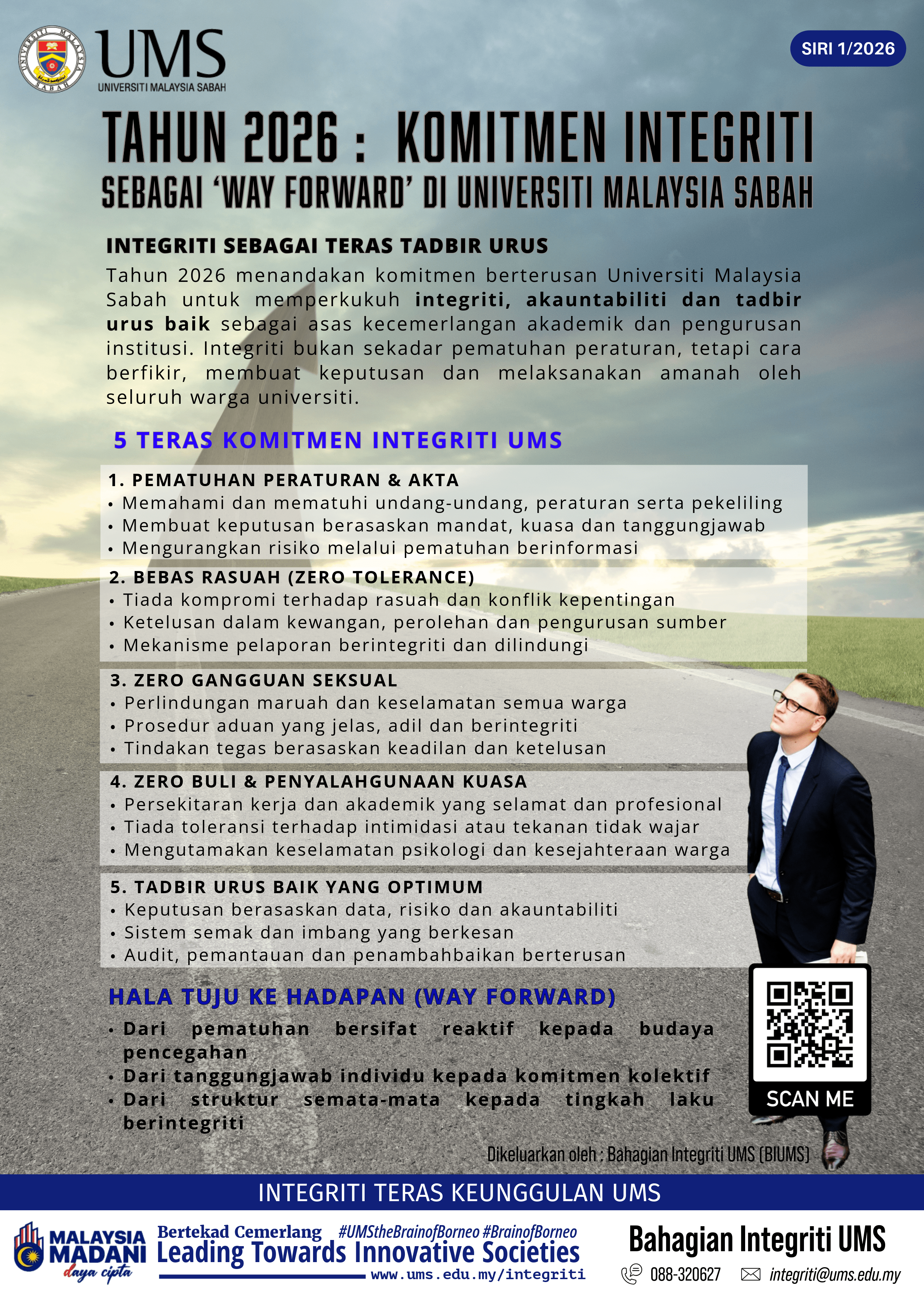 02. Adalah dimaklumkan bahawa Pihak Pusat Persediaan Sains dan Teknologi (PPST) amat mengalu-alukan aduan/komen dan cadangan semua warga UMS mengenai mutu penyampaian perkhidmatan PPST dengan mengisi Kajian Kepuasan Pelanggan yang disediakan di pautan https://erespon.ums.edu.my/kaunter/kepuasan_pelanggan?jafpib=PPST&id=104 atau mengimbas kod QR yang telah disediakan seperti dalam poster.