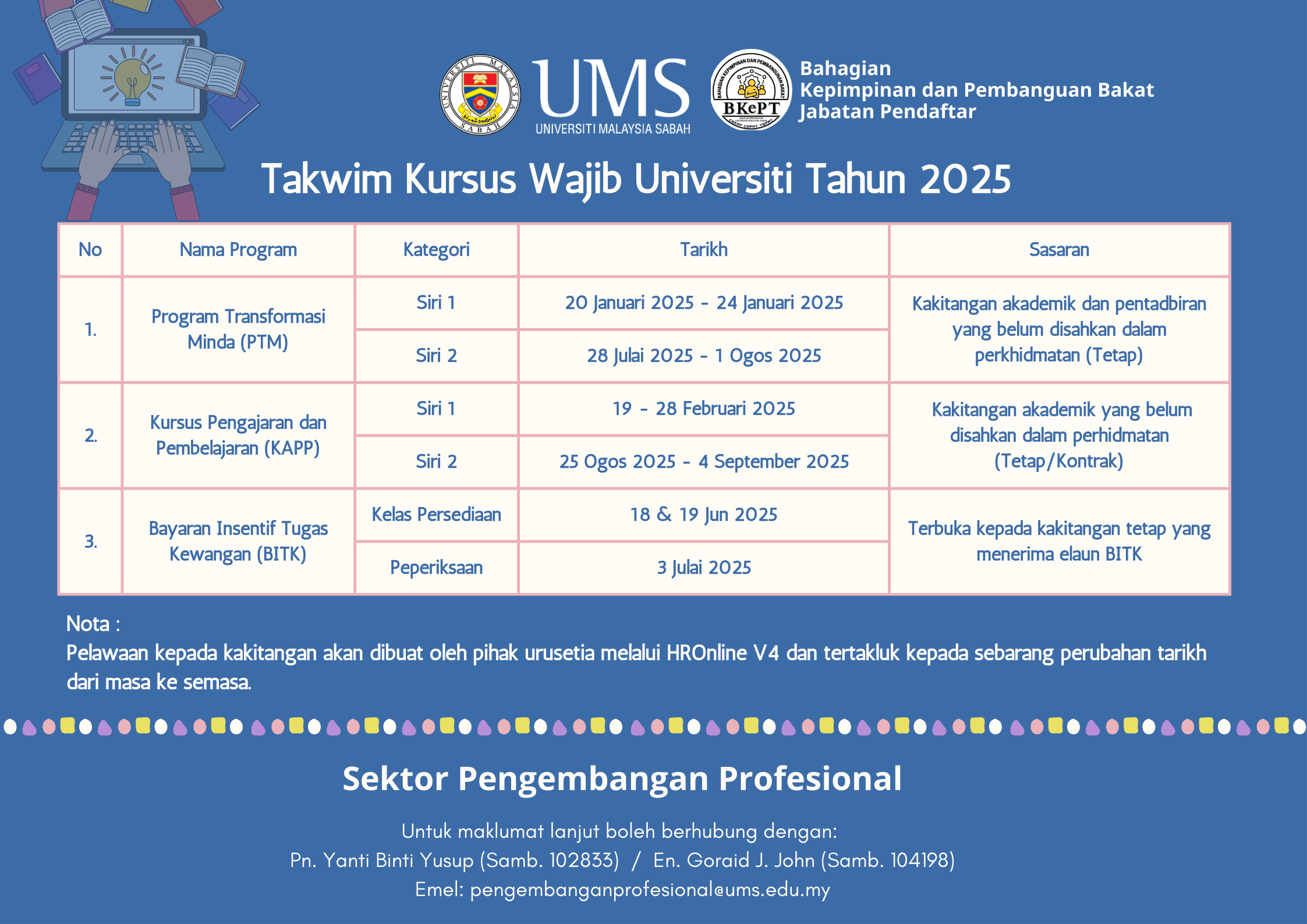 Pengumuman Daripada: Bahagian Kepimpinan dan Pembangunan Bakat (BKEPT), Jabatan Pendaftar