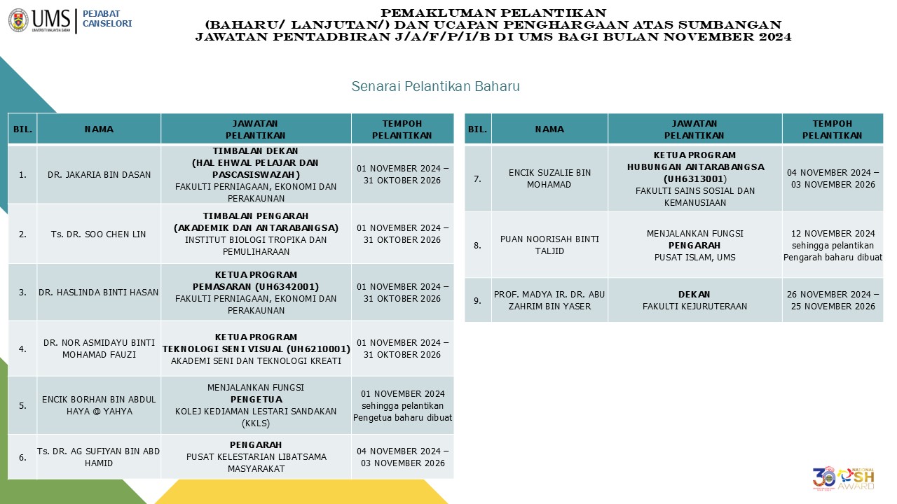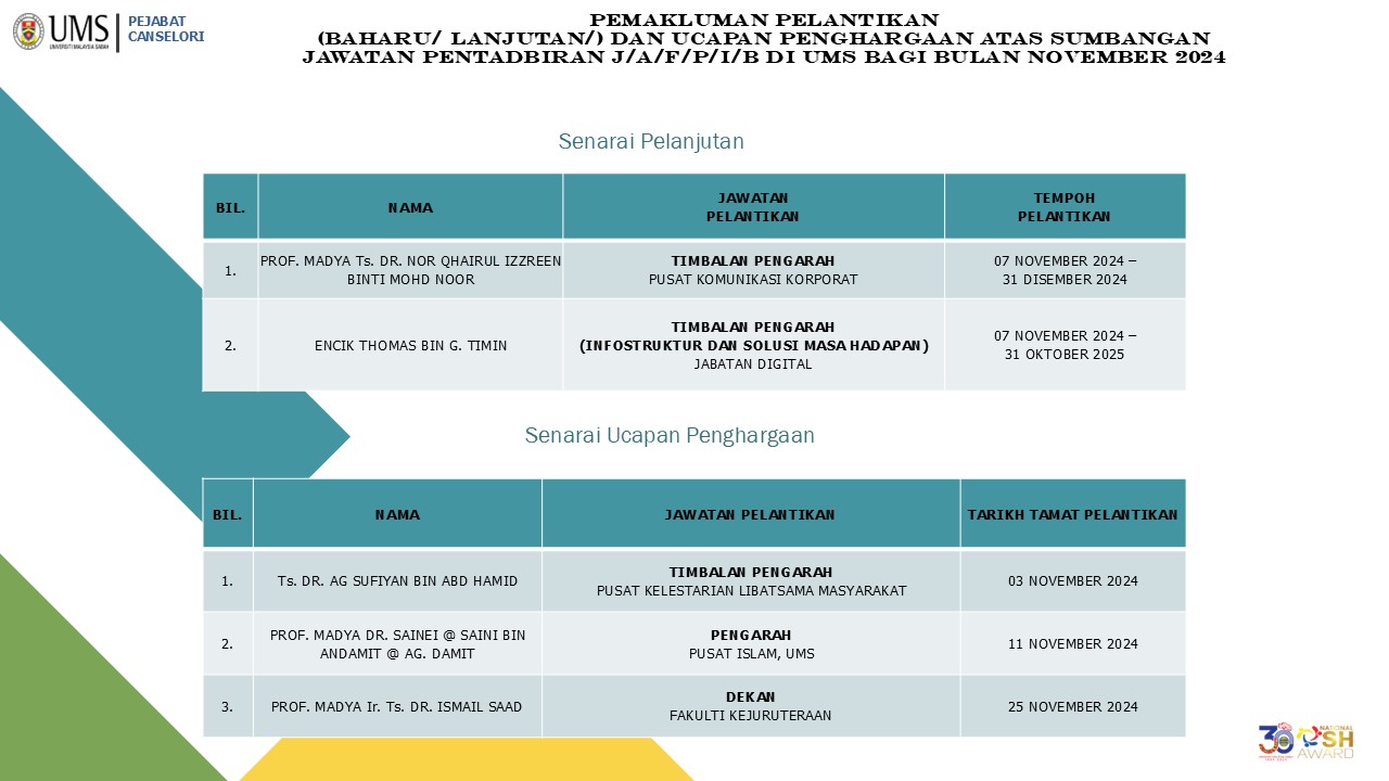 Pengumuman Daripada: Unit Pelantikan, Pejabat Canselori