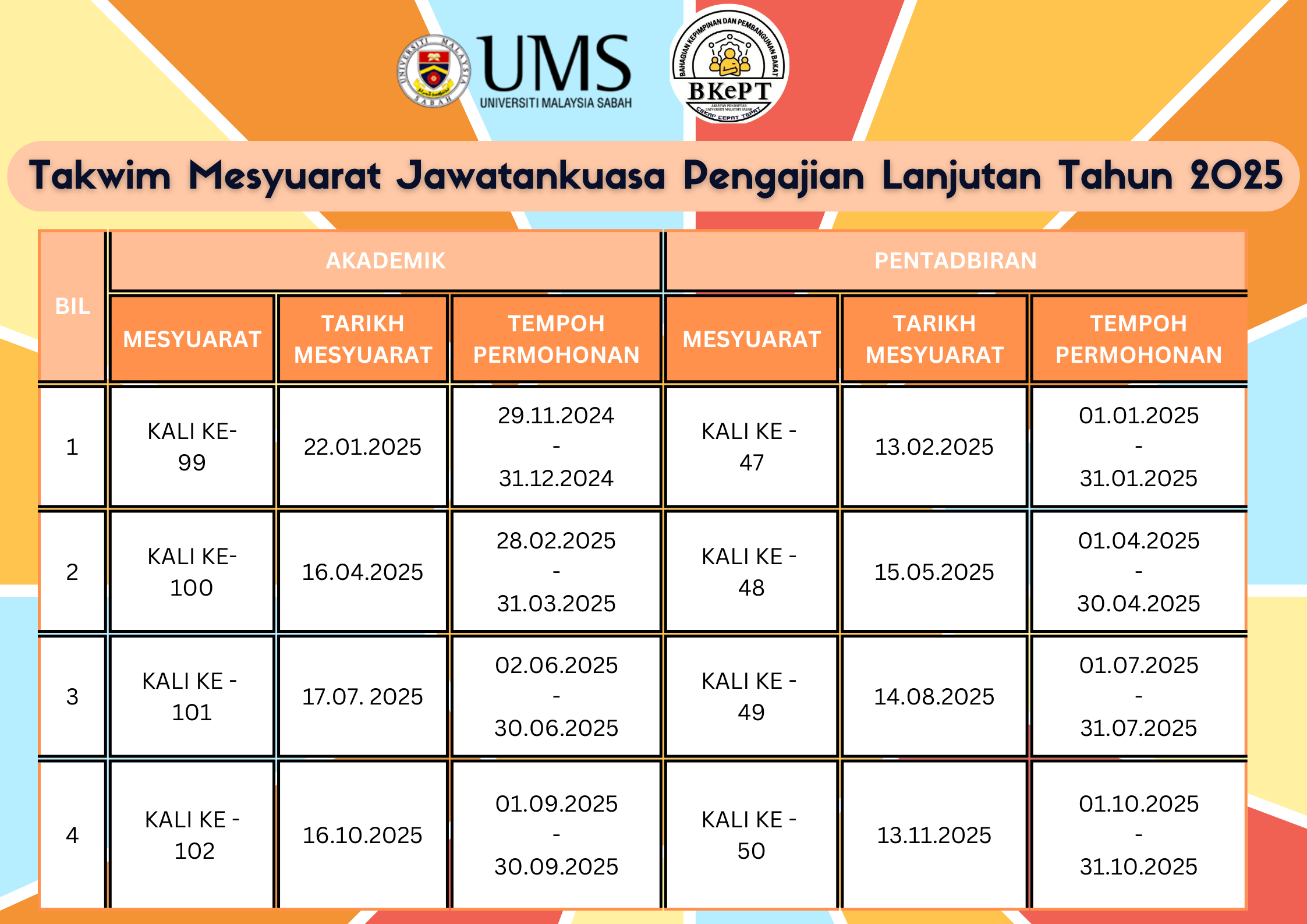 Takwim Mesyuarat Jawatankuasa Pengajian Lanjutan Akademik & Pentadbiran Tahun 2025