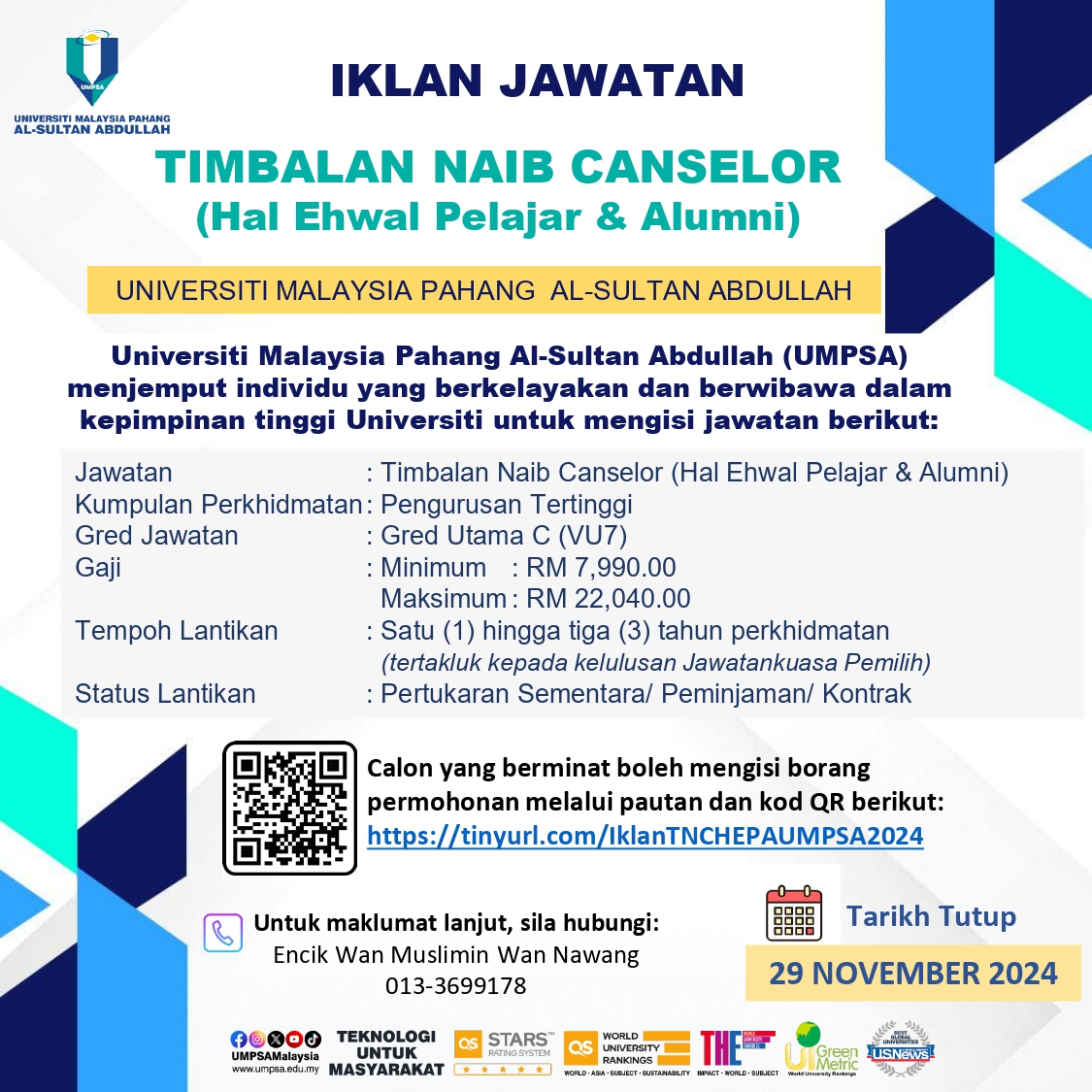Bersama-sama ini dilampirkan borang pencalonan / permohonan yang turut mengandungi kriteria pemilihan. Borang permohonan yang telah lengkap perlu dihantar melalui email (Alamat emel ini dilindungi dari Spambot. Anda perlu hidupkan JavaScript untuk melihatnya.) SEBELUM atau PADA14 NOVEMBER 2024.
