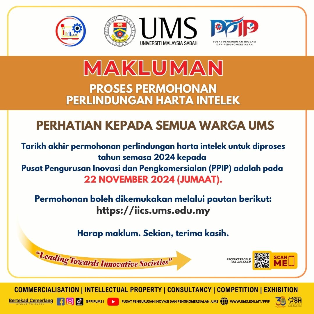 Sukacita dimaklumkan bahawa pihak Pusat Pengurusan Penyelidikan (PPP) mempelawa YBrs. Prof. / Prof. Madya / Dr. / Tuan / Puan untuk mengisi borang permohonan / pencalonan Anugerah Khas Tun Canselor Sempena Majlis Anugerah Penyelidikan UMS Tahun 2024.