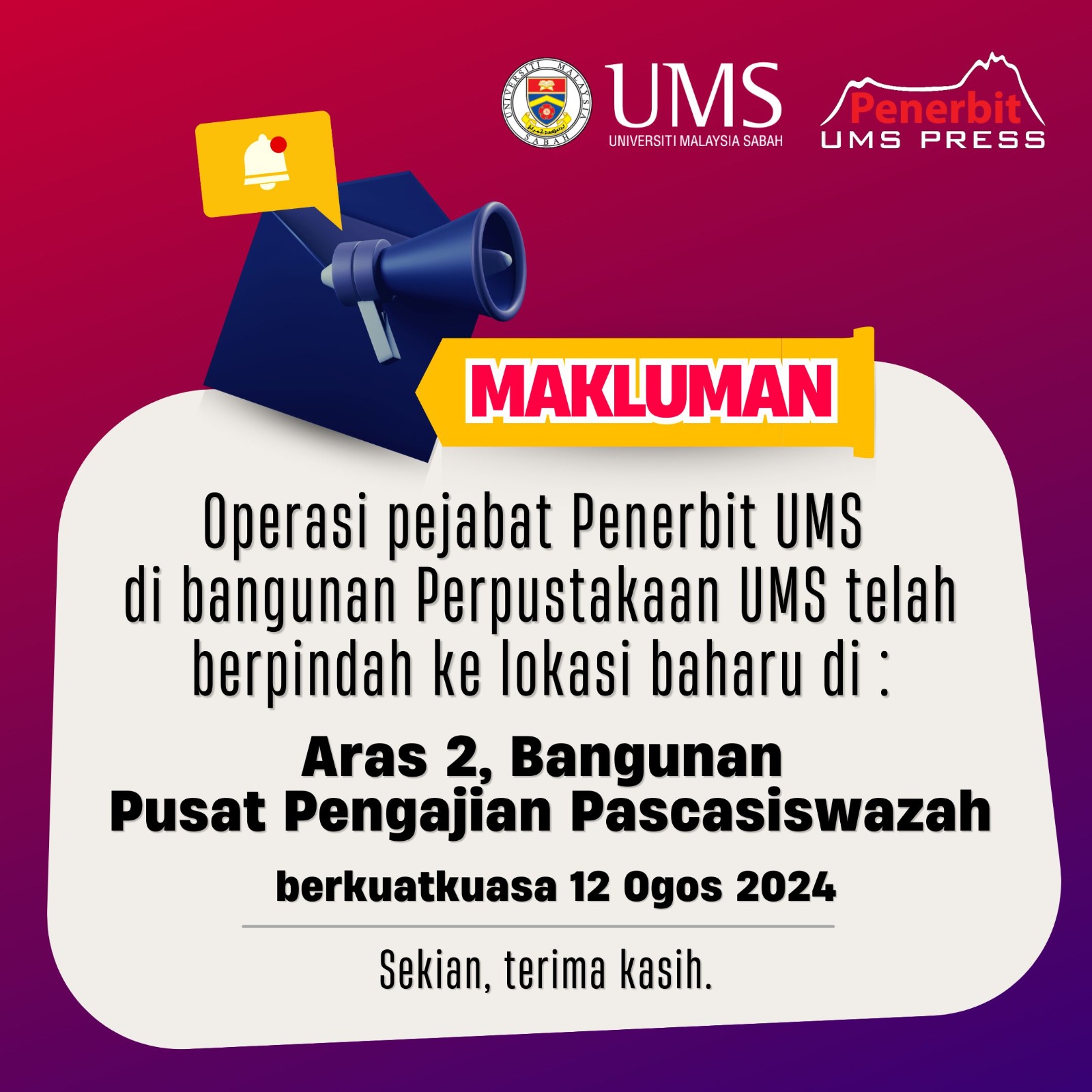 PEMAKLUMAN PERPINDAHAN PEJABAT OPERASI PENERBIT UMS DI ARAS 2, BANGUNAN PUSAT PENGAJIAN PASCASISWAZAH