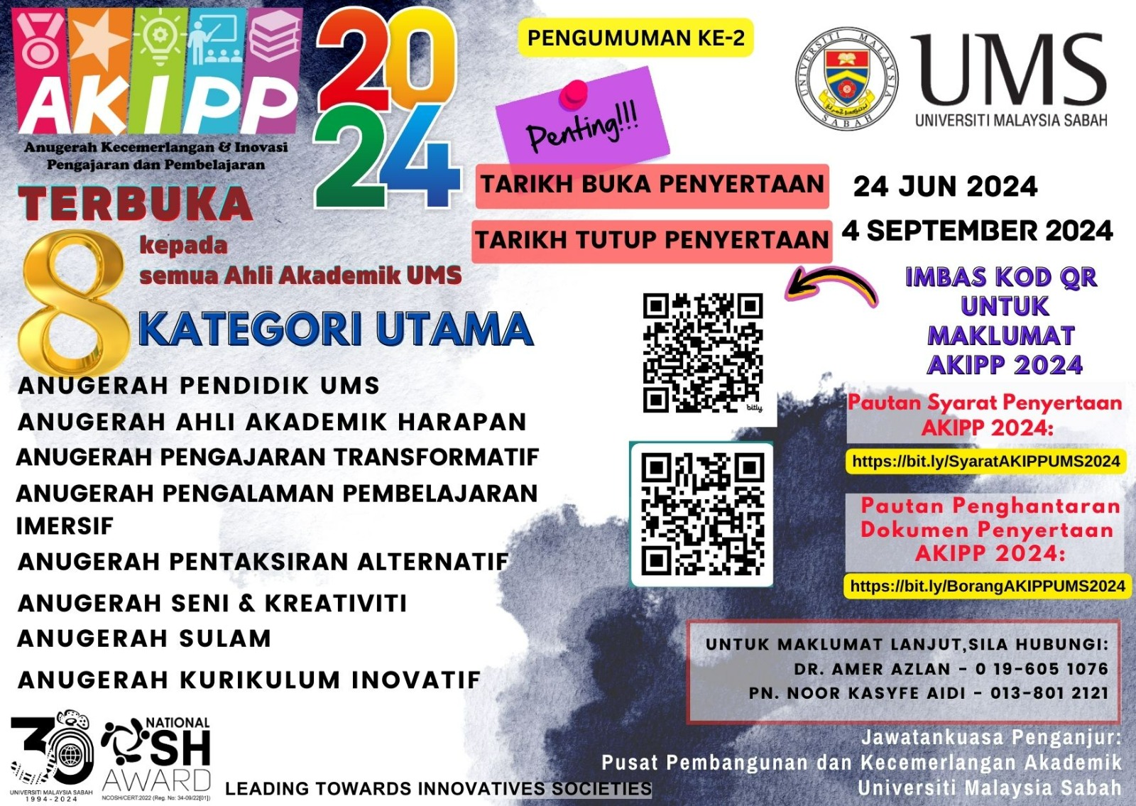 4. Sehubungan itu, Sekretariat ICRE 2024 amat berbesar hati mengalu-alukan penyertaan ahli akademik, ahli profesional, penyelidik, pendidik dan pelajar untuk menghantar wakil ke persidangan ini. Kertas kerja persidangan ini berpeluang diterbitkan dalam prosiding e-ISSN. Sila layari laman sesawang https://icre2024ums.my.canva.site/icre-fpp untuk akses maklumat-maklumat terkini ICRE 2024. Sebarang pertanyaan, boleh berhubung dengan pihak sekretariat persidangan Prof. Madya Dr. Christina Andin (+601126109515). Sila imbas kod QR pada poster untuk maklumat lanjut.
