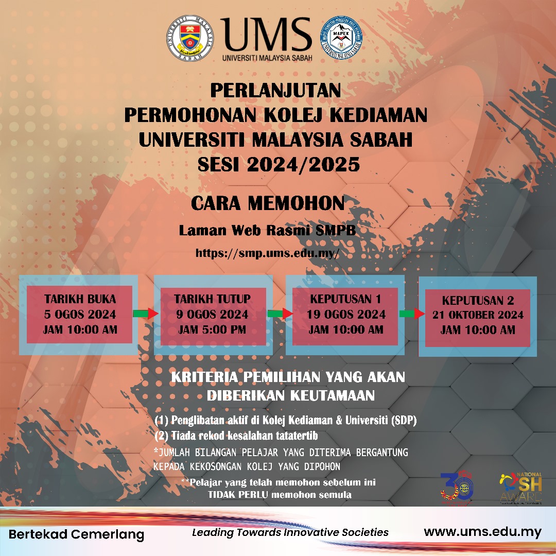 Pengumuman Daripada: Majlis Pengetua Kolej Kediaman (MAPEK) UMS