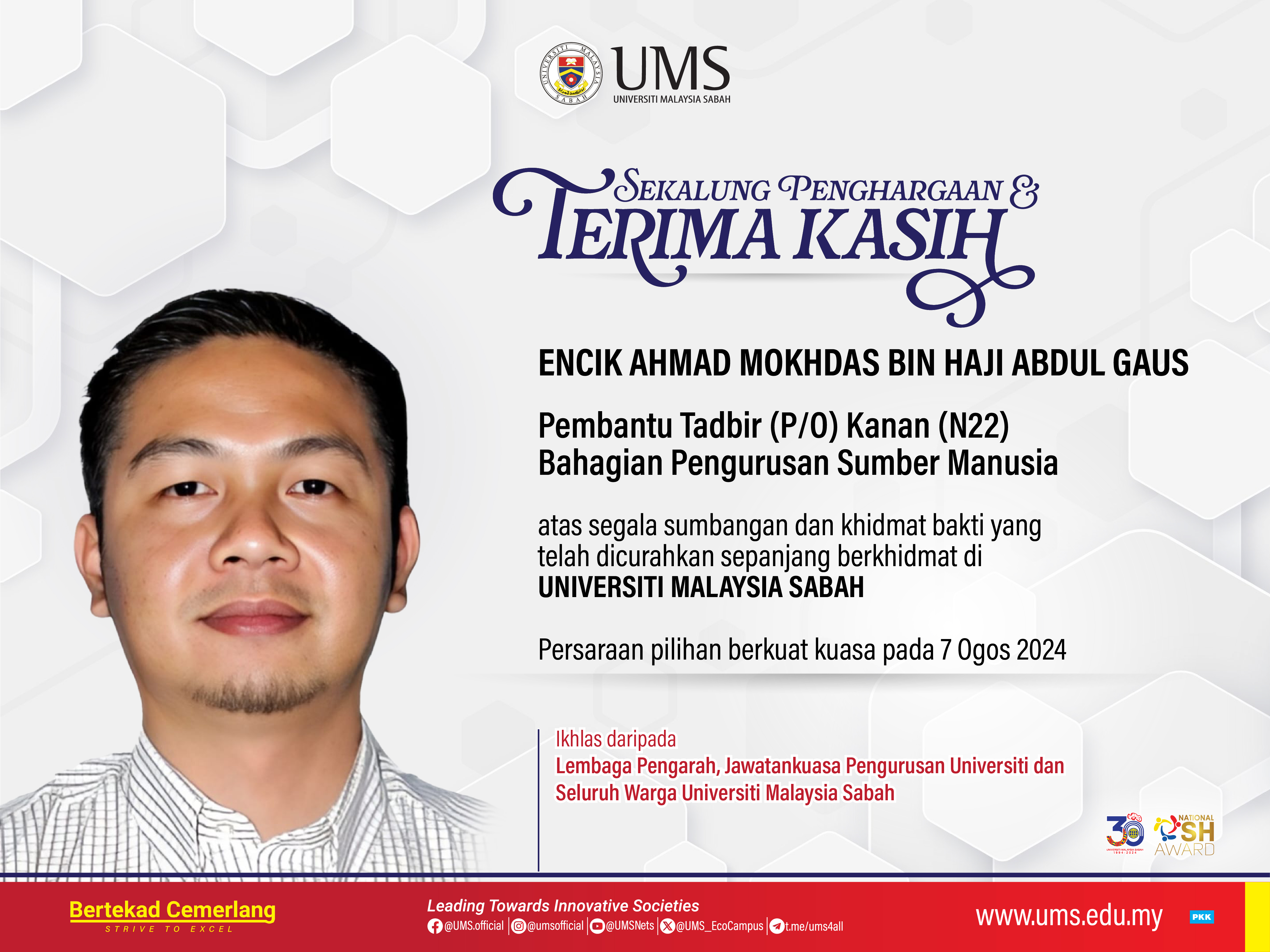 Sekalung Penghargaan dan Ucapan Terima Kasih kepada Kakitangan UMS yang Telah Bersara