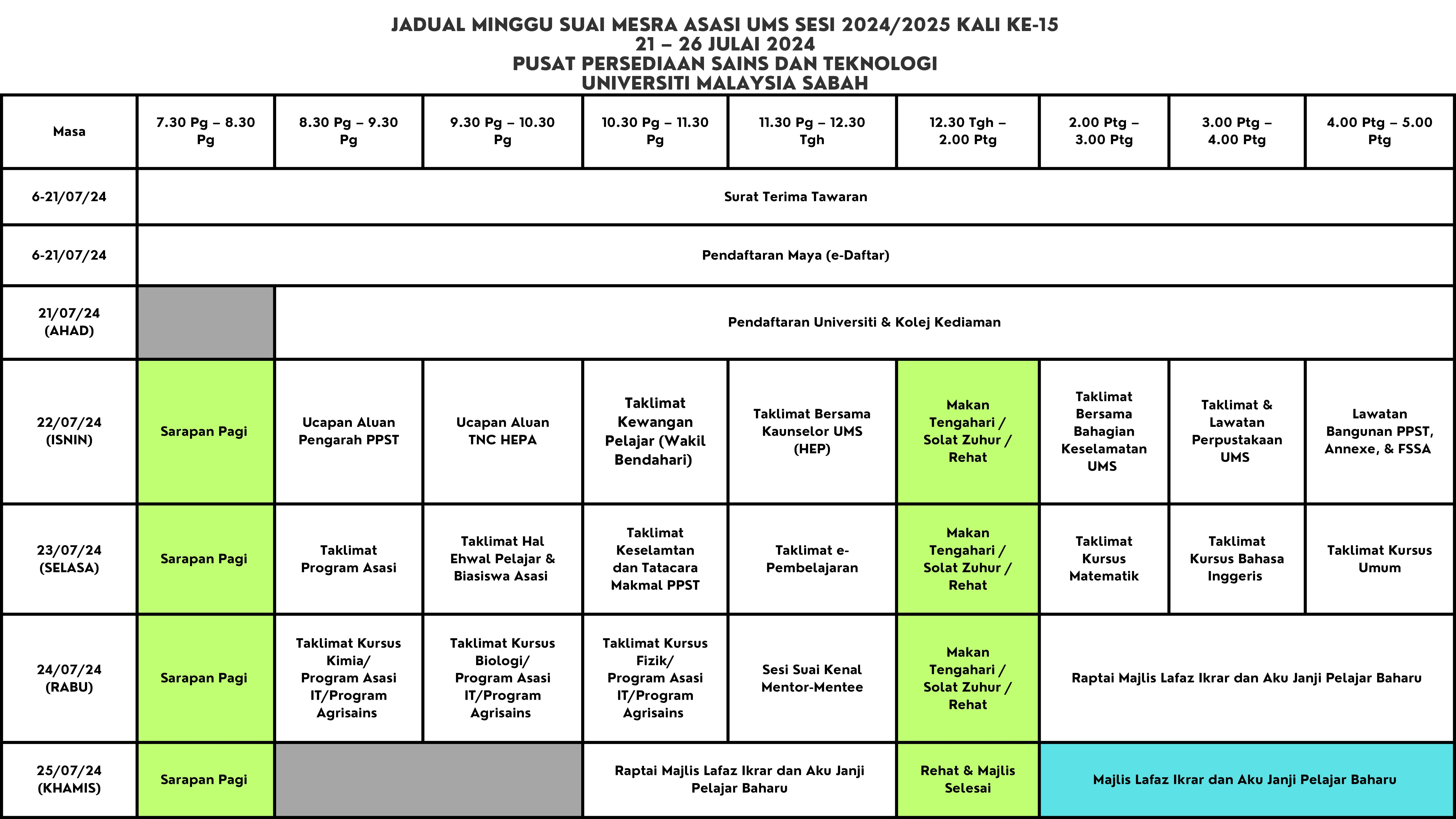 ZON A | 17 Julai 2024 | 26 Julai 2024 |