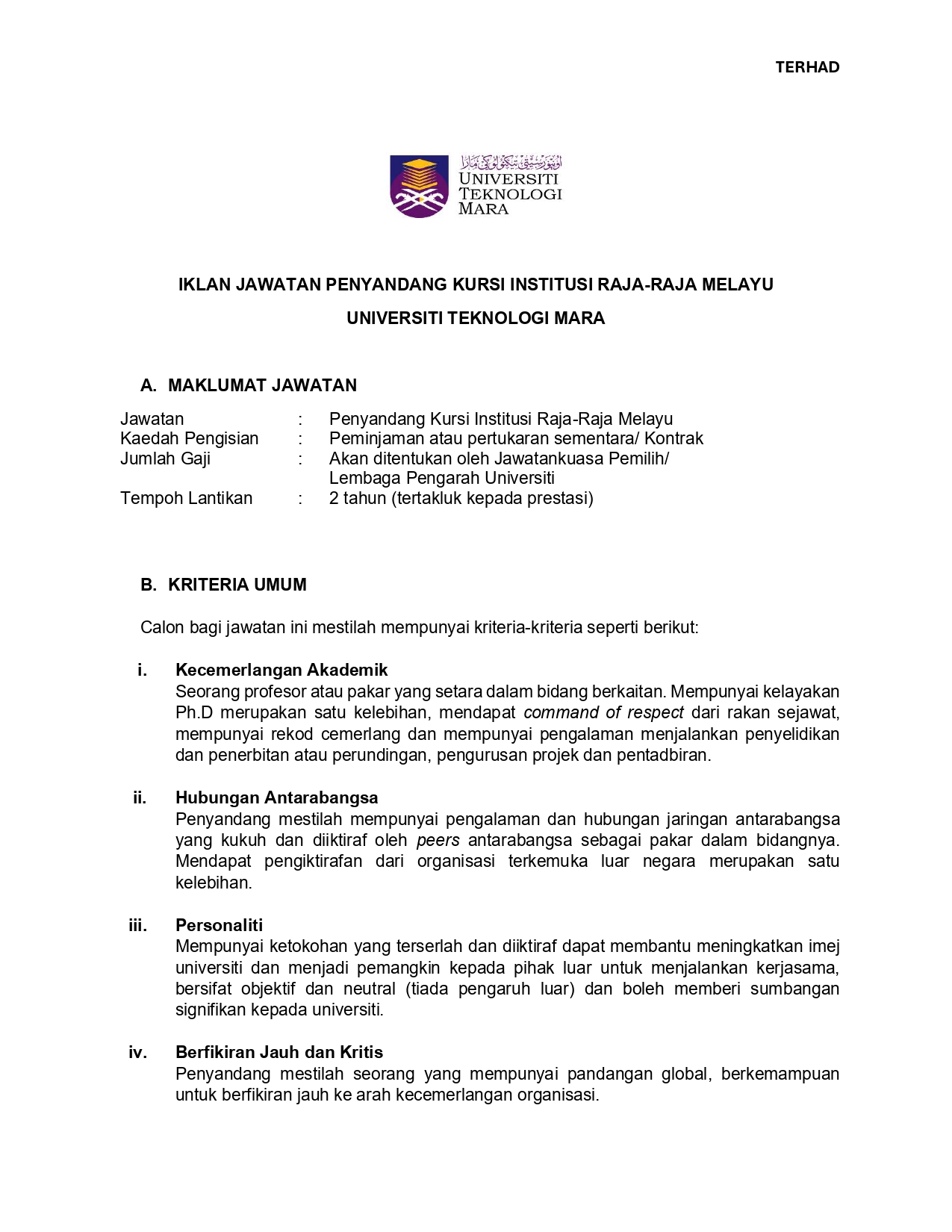 Hebahan sebelum ini telah dibuat pada 4 Januari 2024. Terima Kasih.