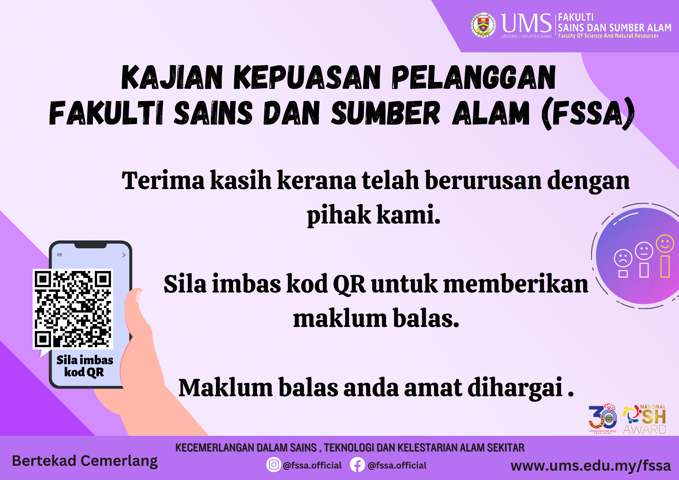 Adalah dimaklumkan bahawa, FSSA sedang melaksanakan kajian kepuasan pelanggan bagi meningkatkan mutu dan kualiti perkhidmatan kami.