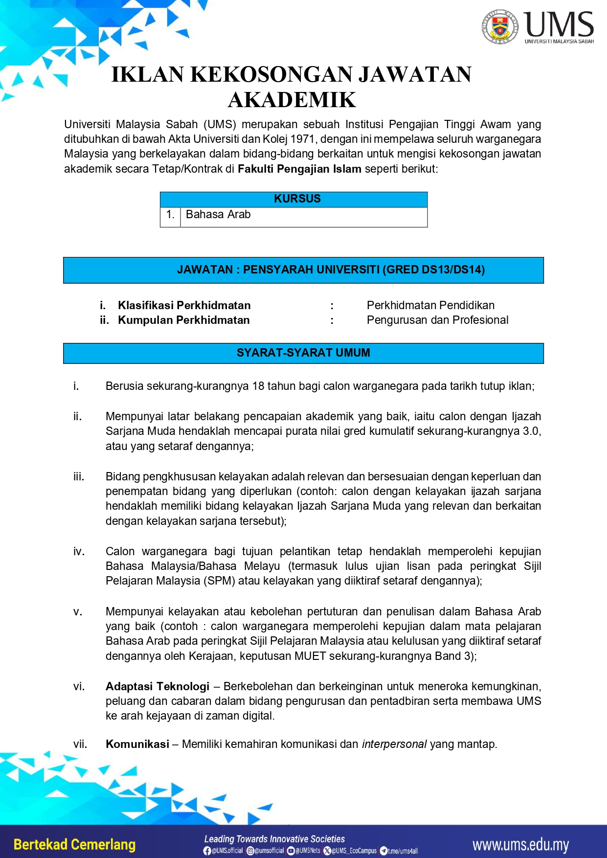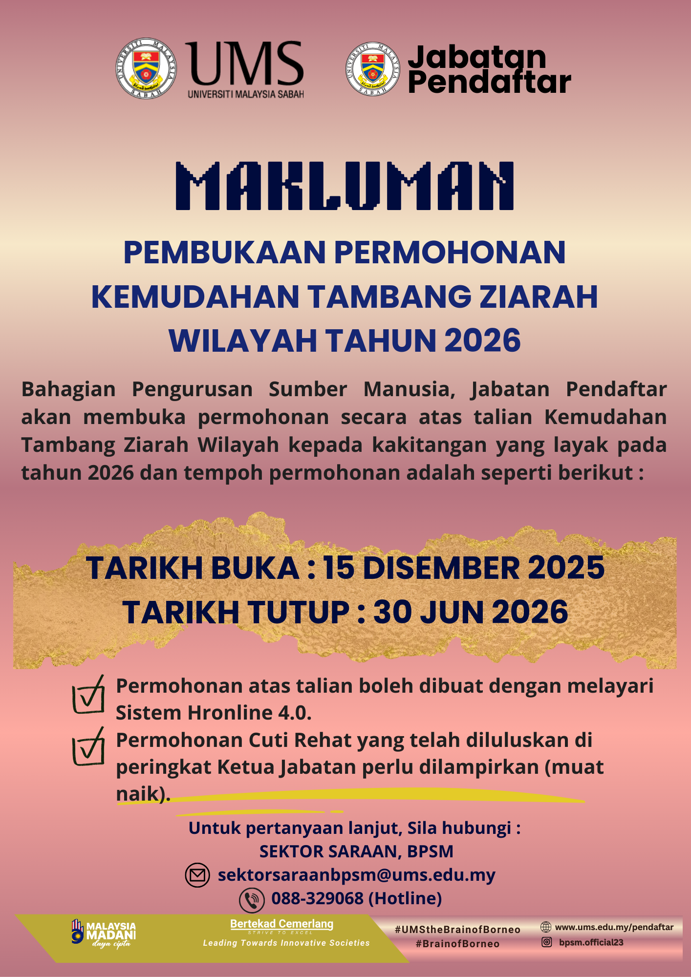 Sehubungan itu, semua warga UMS dijemput untuk mengambil bahagian dengan mengisi soal selidik yang disediakan dalam tempoh berikut: