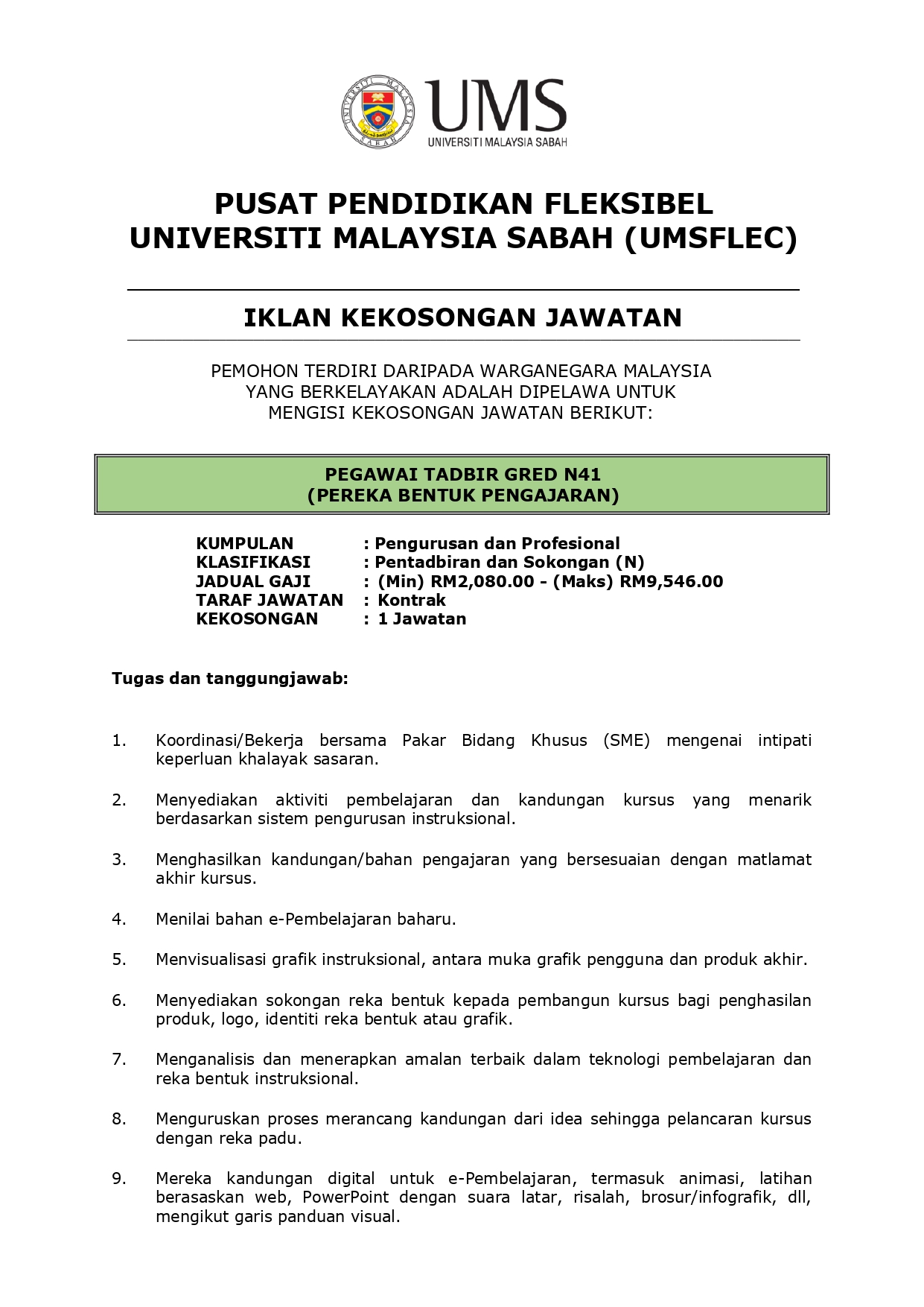 Iklan Jawatan Kosong Pegawai Tadbir (N41) di Pusat Pendidikan Fleksibel UMS