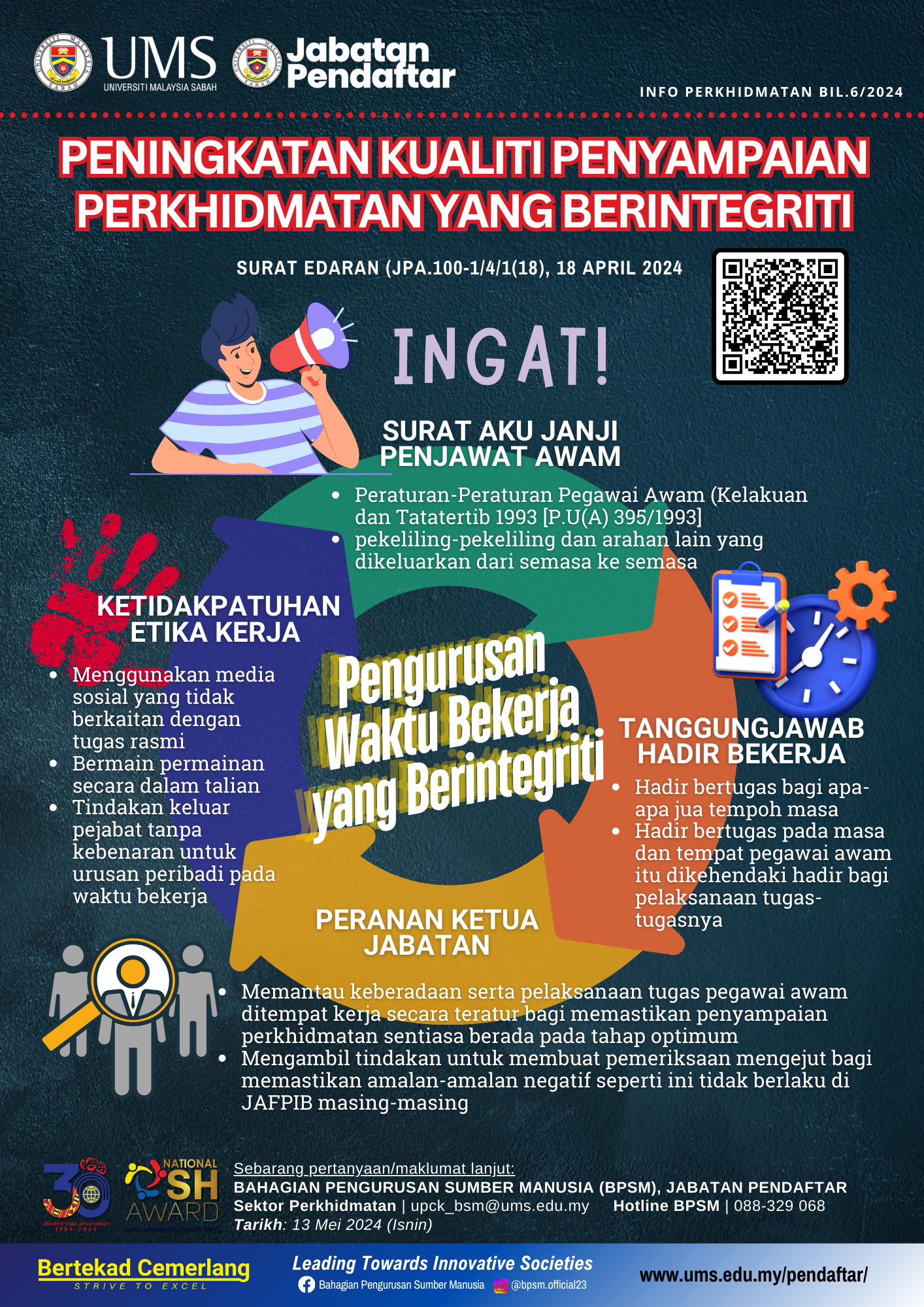 Bersama ini disertakan infografik berkaitan Peningkatan Kualiti Penyampaian Perkhidmatan Yang Berintegriti untuk rujukan dan hebahan di peringkat JAFPIB masing-masing.