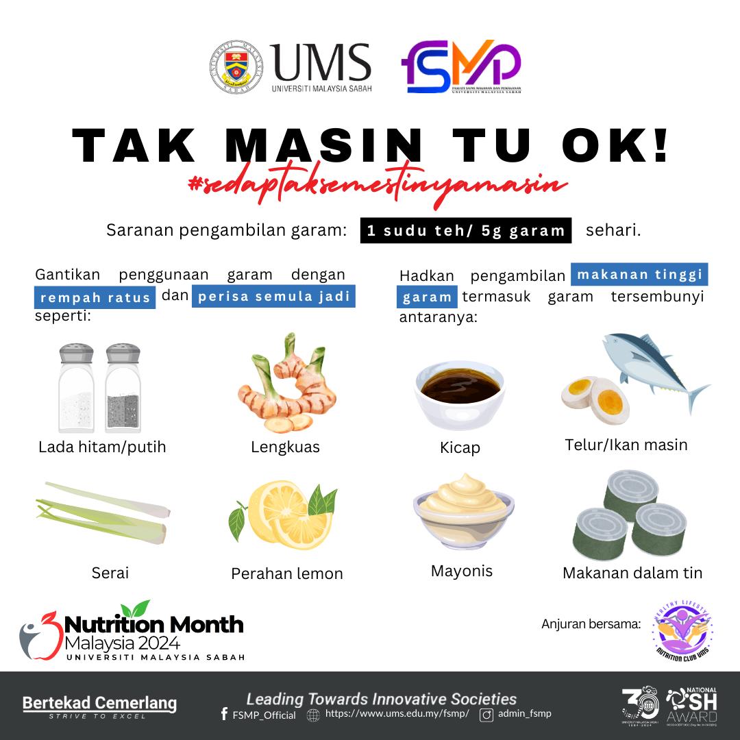 Tahukah anda? Setiap individu hanya disarankan mengambil garam sebanyak satu sudu teh sehari atau bersamaan dengan 5g garam.