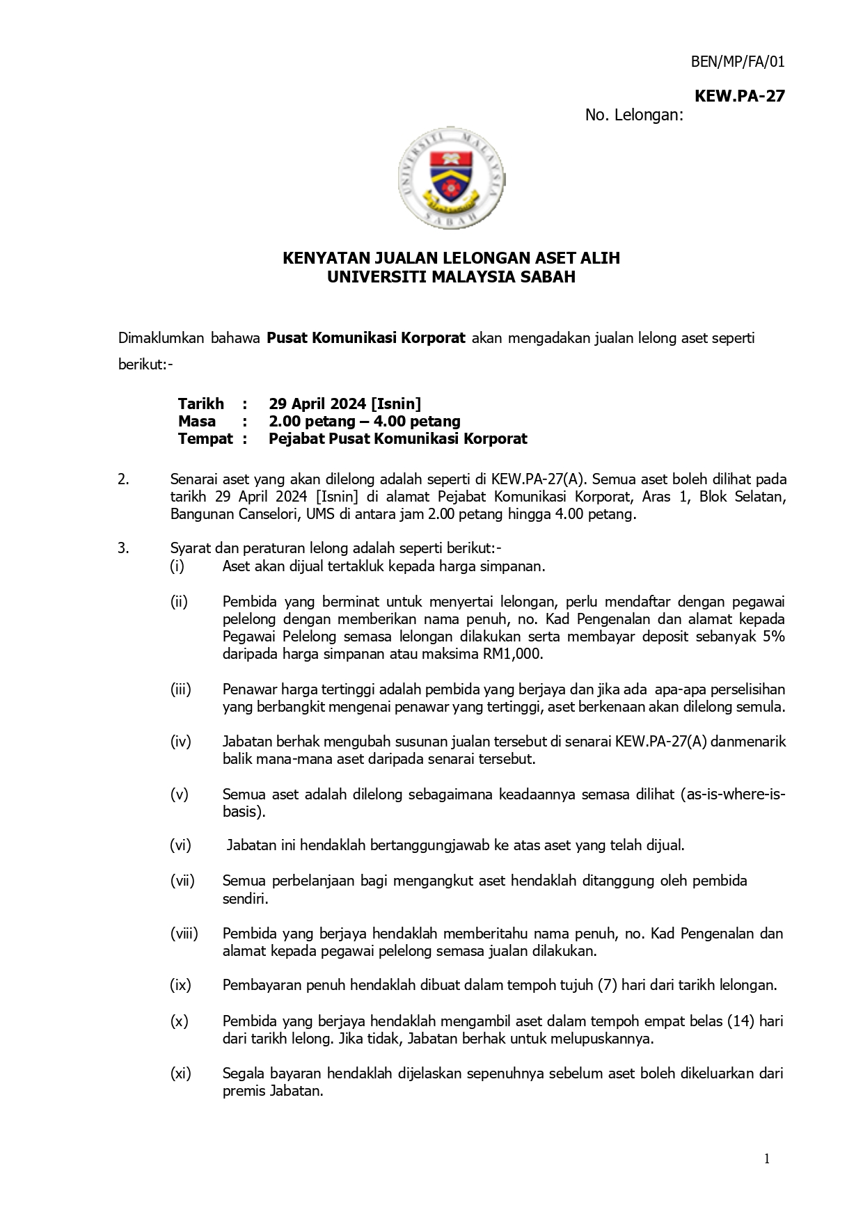 Pengumuman Daripada: Fakulti Sains Makanan dan Pemakanan