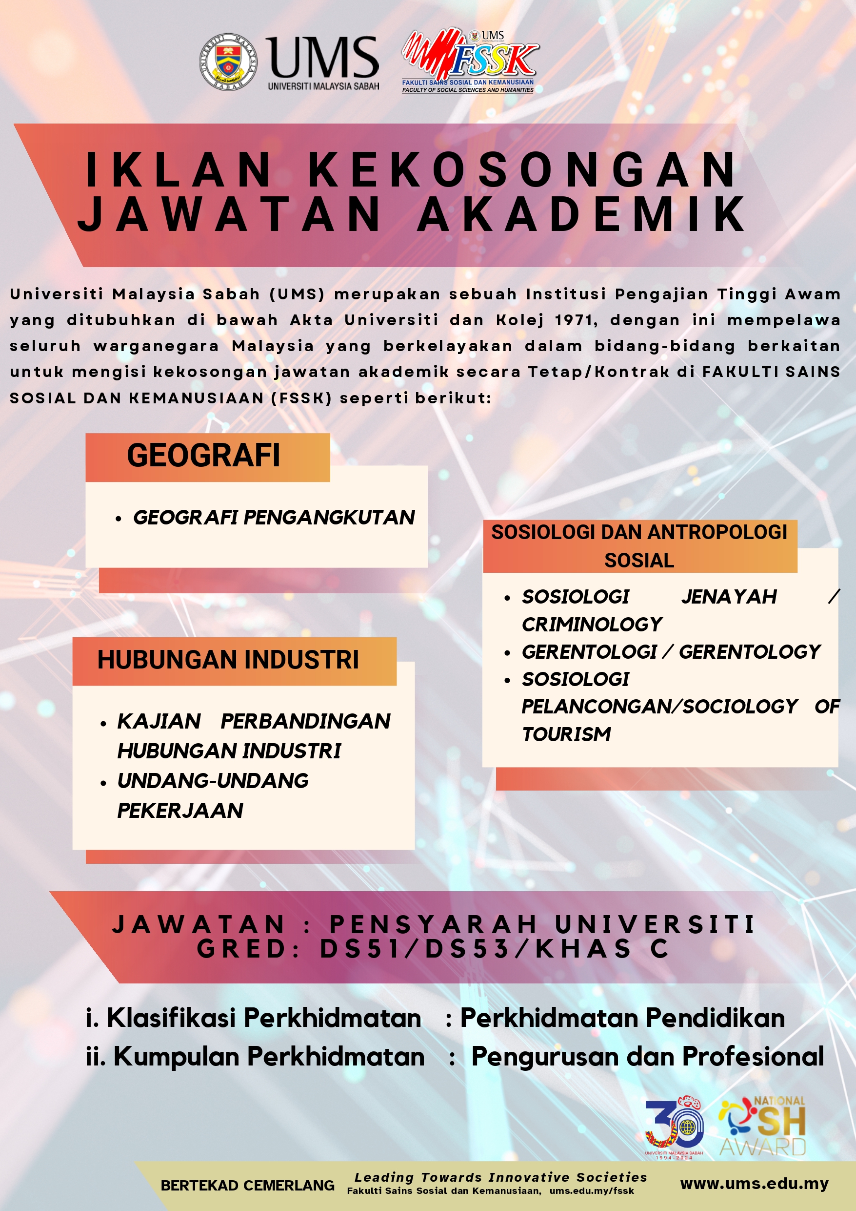 | Iklan Kekosongan Jawatan Akademik di Fakulti Sains Sosial dan Kemanusiaan |