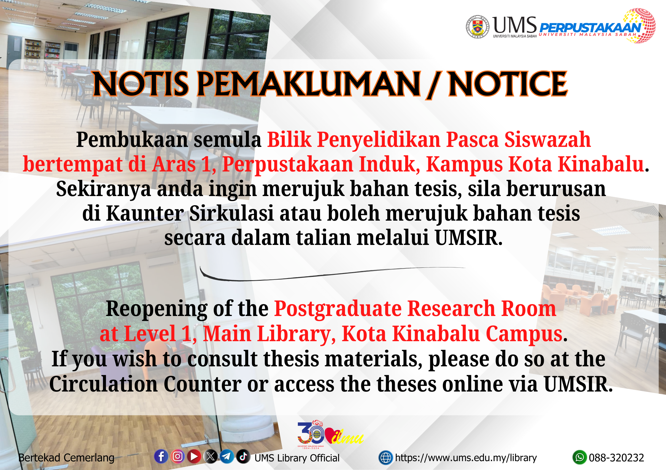 Pengumuman Daripada: Jabatan Pembangunan dan Penyelenggaraan