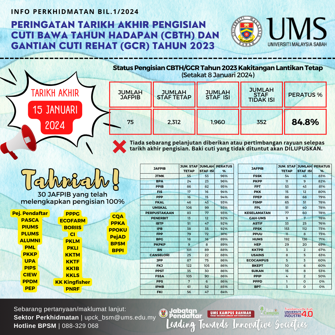 BERITA BAIK KEPADA WARGA UNIVERSITI MALAYSIA SABAH. PERMOHONAN TAHUN 2024 KINI DIBUKA.