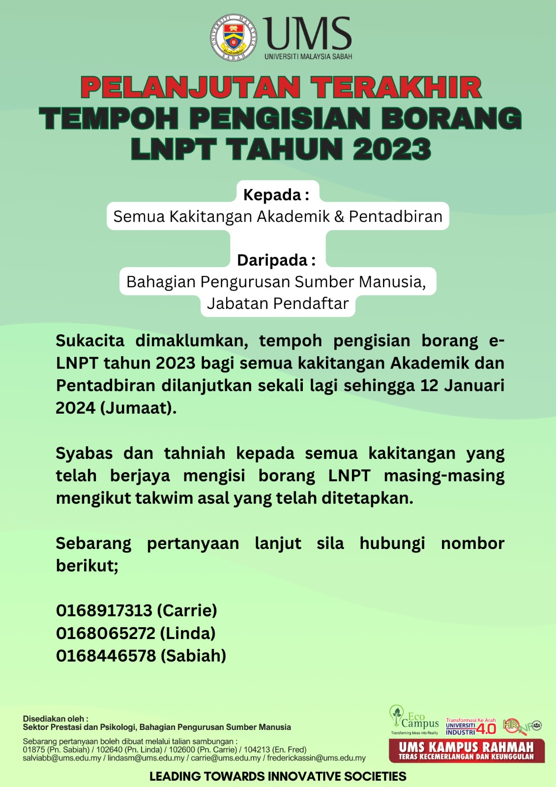 Pengumuman Daripada: Bahagian Pengurusan Sumber Manusia