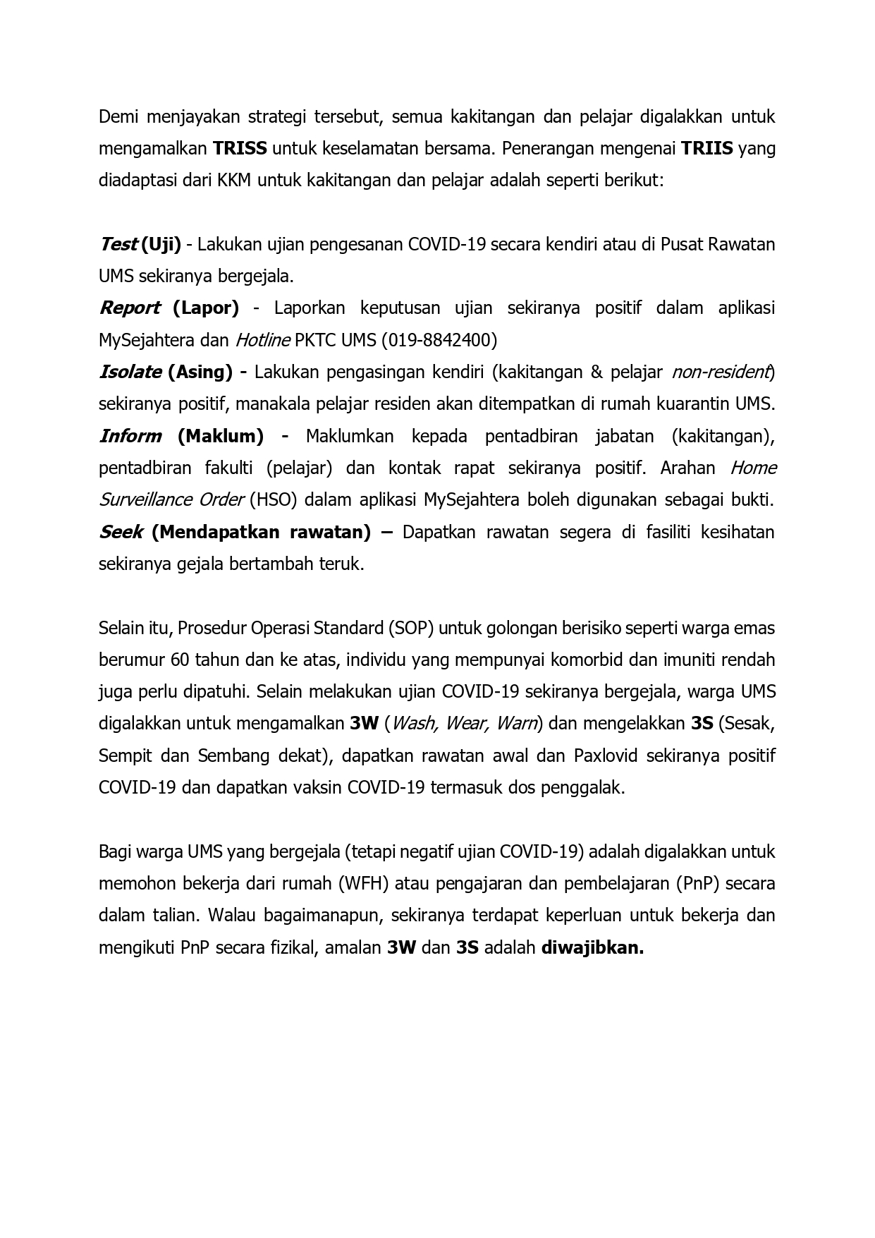 Pengumuman Daripada: Pusat Kesiapsiagaan dan Tindakan Cepat UMS