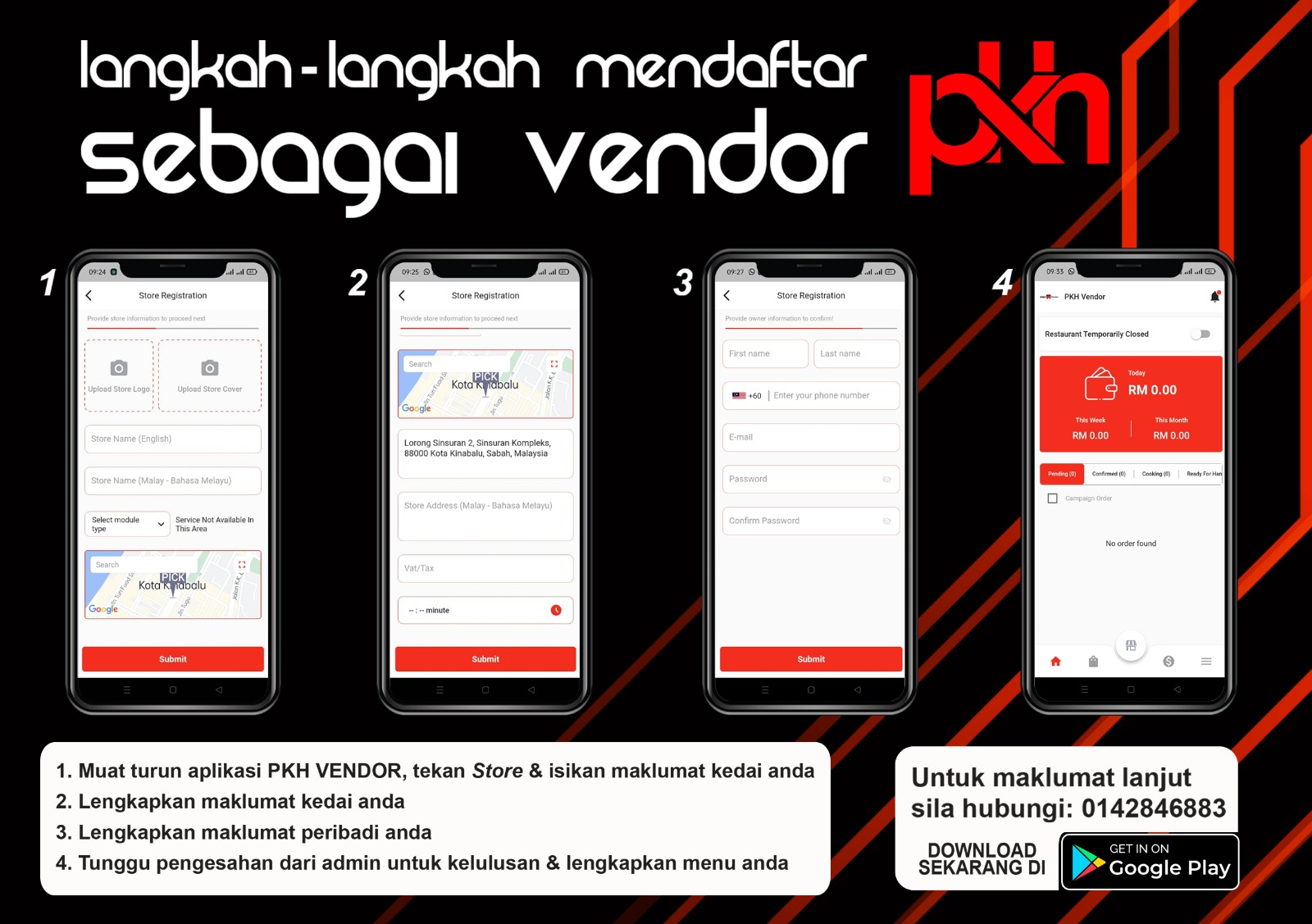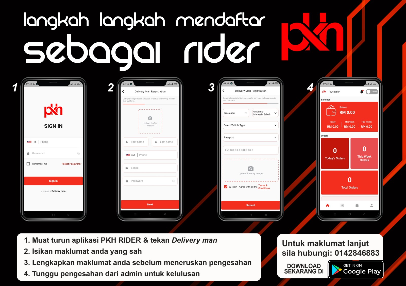 Pusat Pelaburan, Endowmen dan Wakaf (CIEW) mempelawa warga UMS untuk memuat turun aplikasi PKH APPS di Google Play bagi tempahan makanan/ pendaftaran sebagai vendor dan rider PKH APPS.