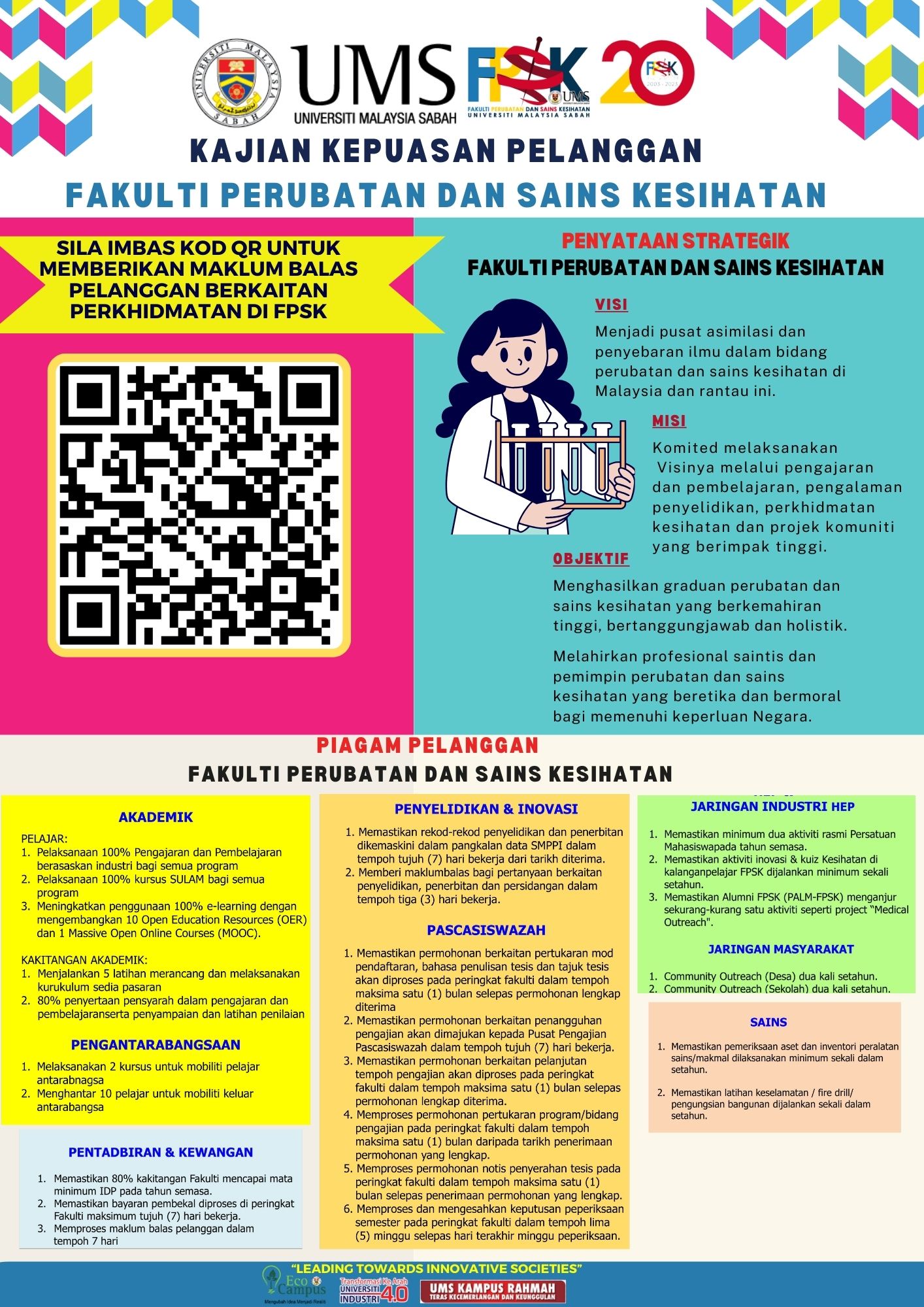 Therefore, please take part in our customer satisfaction survey [FPSK] from 8th December 2023 until 31st December 2023 by scanning the QR code or through this link  https://eoffice.ums.edu.my/e-respon/kepuasan_pelanggan.php?id=138&key=FPSK  and please state how we can optimize the standards and quality of our services for you.