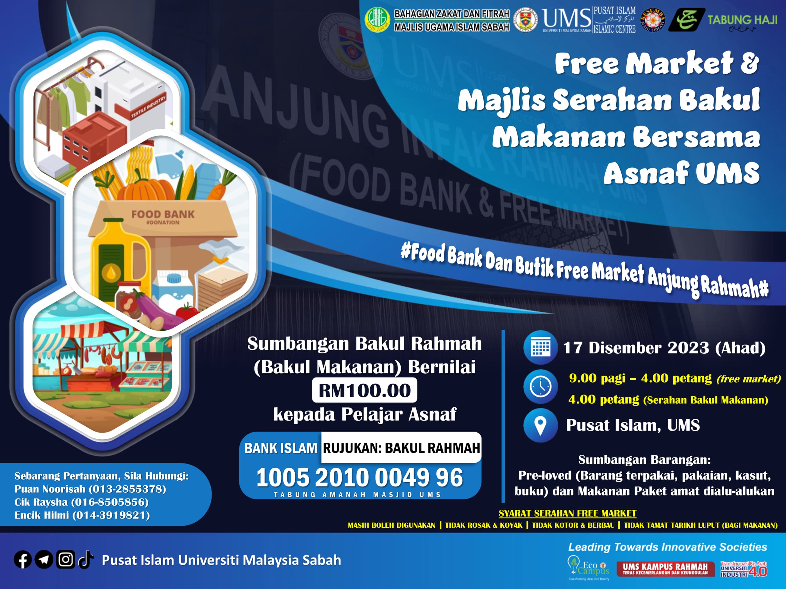 🛍️ Sumbangan Pre-Loved juga seperti barang terpakai, pakaian, kasut, buku dan makanan paket juga amat dialu-alukan (masih dalam keadaan baik dan boleh digunakan).