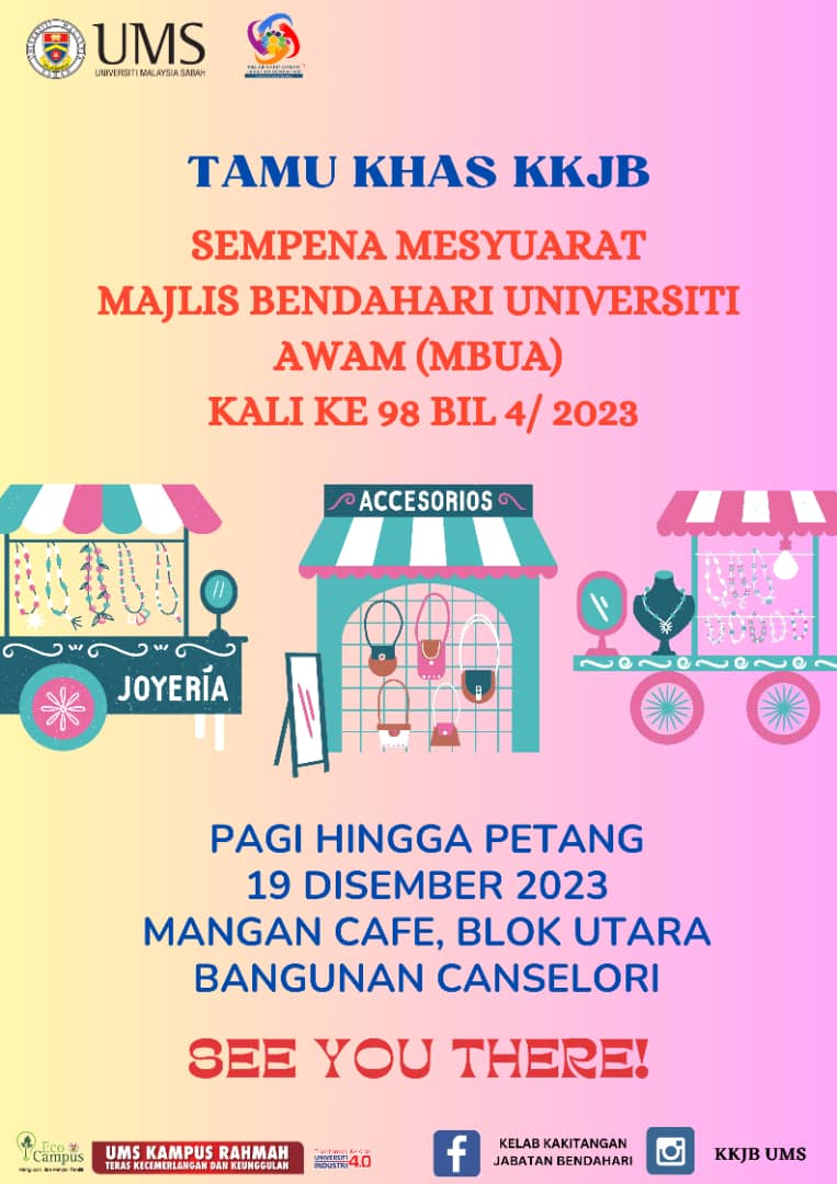 Sukacitanya Pusat Islam UMS dengan Kerjasama daripada KESUMBA UMS, Majlis Ugama Islam Sabah (MUIS), dan Tabung Haji (TH) akan mengadakan Program Pembangunan Ekonomi Asnaf 2023 yang melibatkan pelajar-pelajar Asnaf UMS pada ketetapan berikut:-