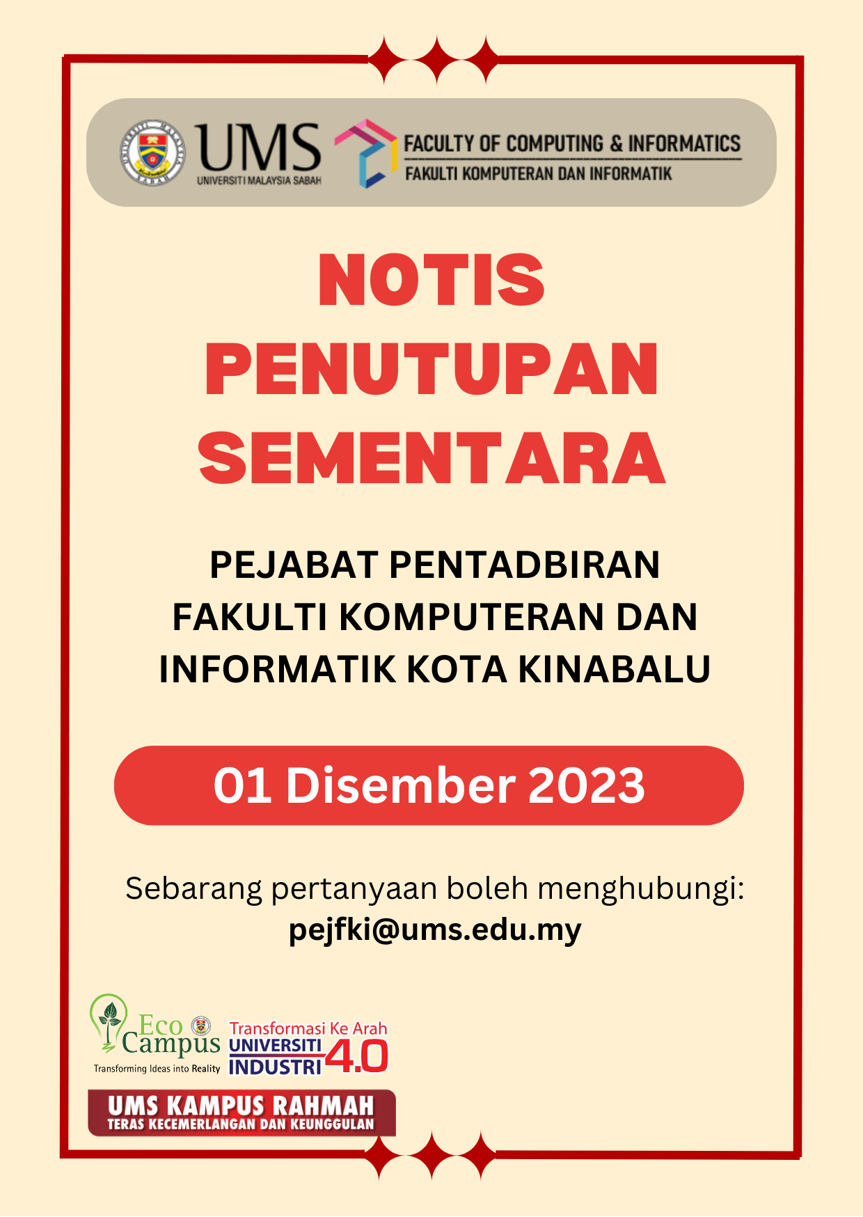 Pengumuman Daripada: Bahagian Pengurusan Sumber Manusia
