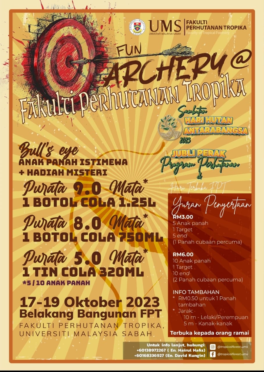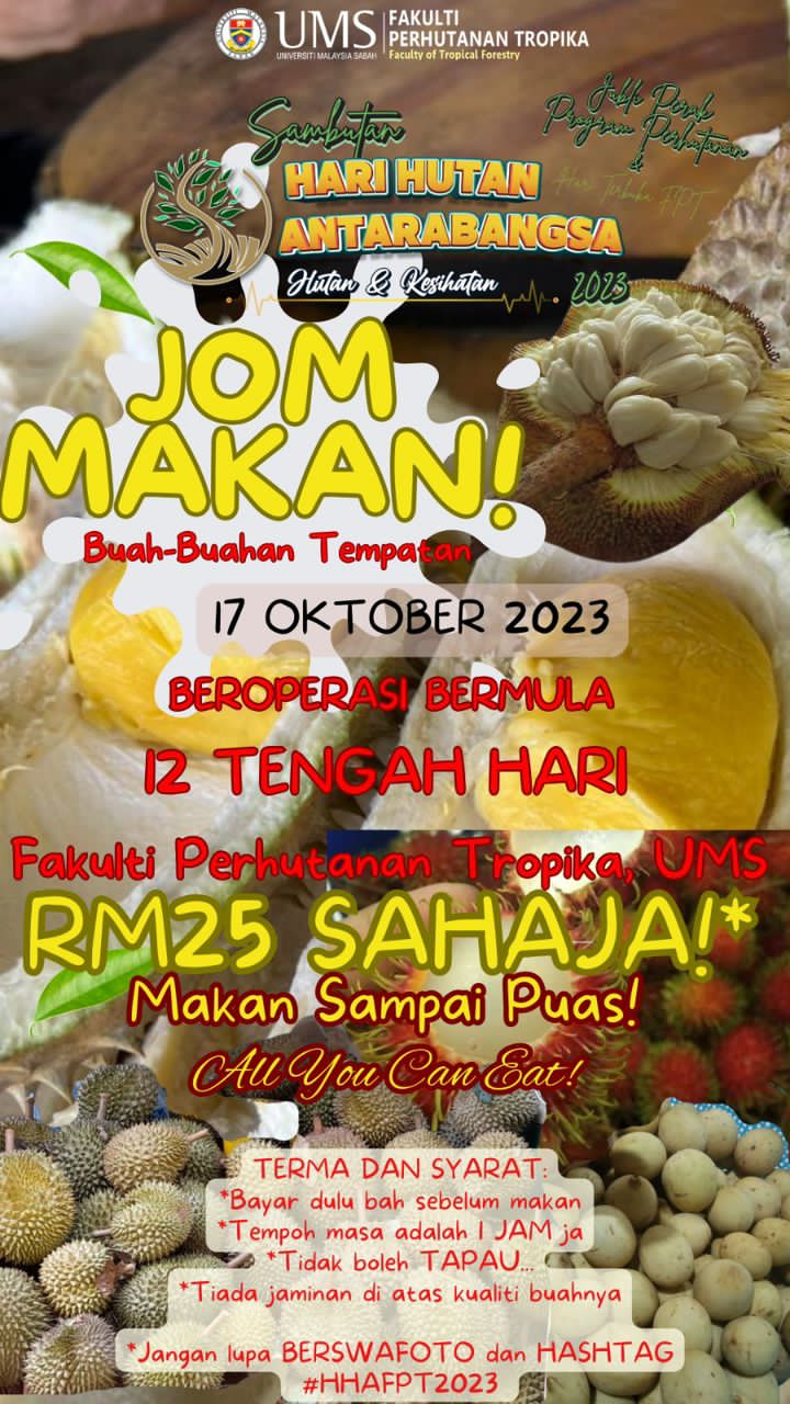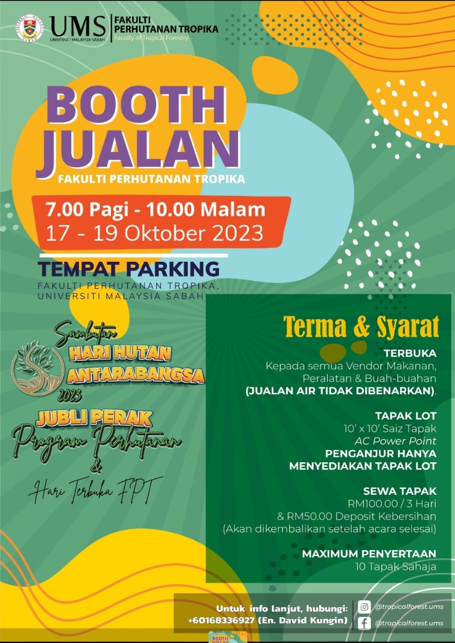Countdown 1 Hari Lagi Sambutan Hari Hutan Antarabangsa Peringkat UMS anjuran Fakulti Perhutanan Tropika yang akan diadakan pada 17 - 19 Oktober 2023.
