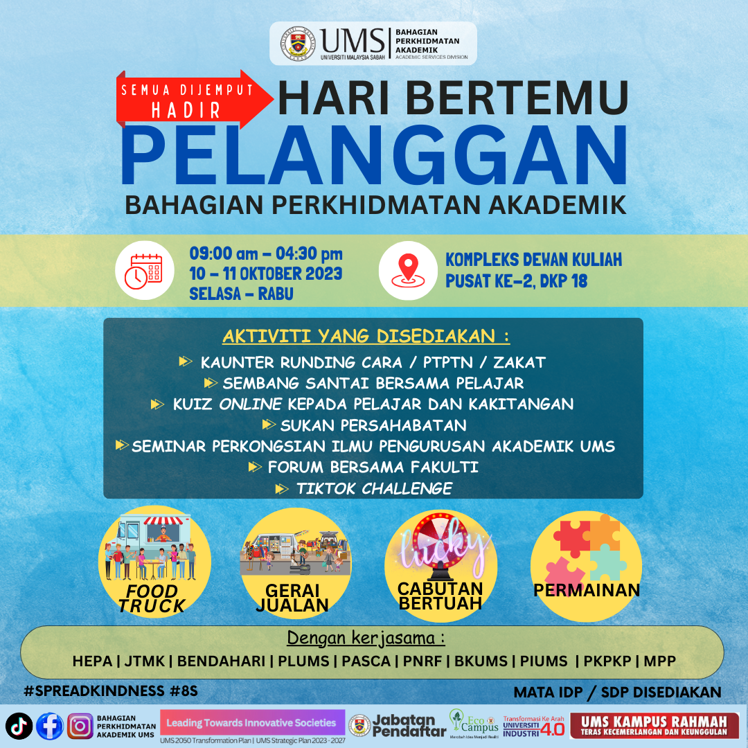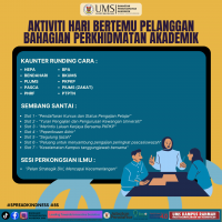 Perhatian kepada warga UMS! 📢📢. Bahagian Perkhidmatan Akademik akan mengadakan Hari Bertemu Pelanggan yang akan berlangsung pada: