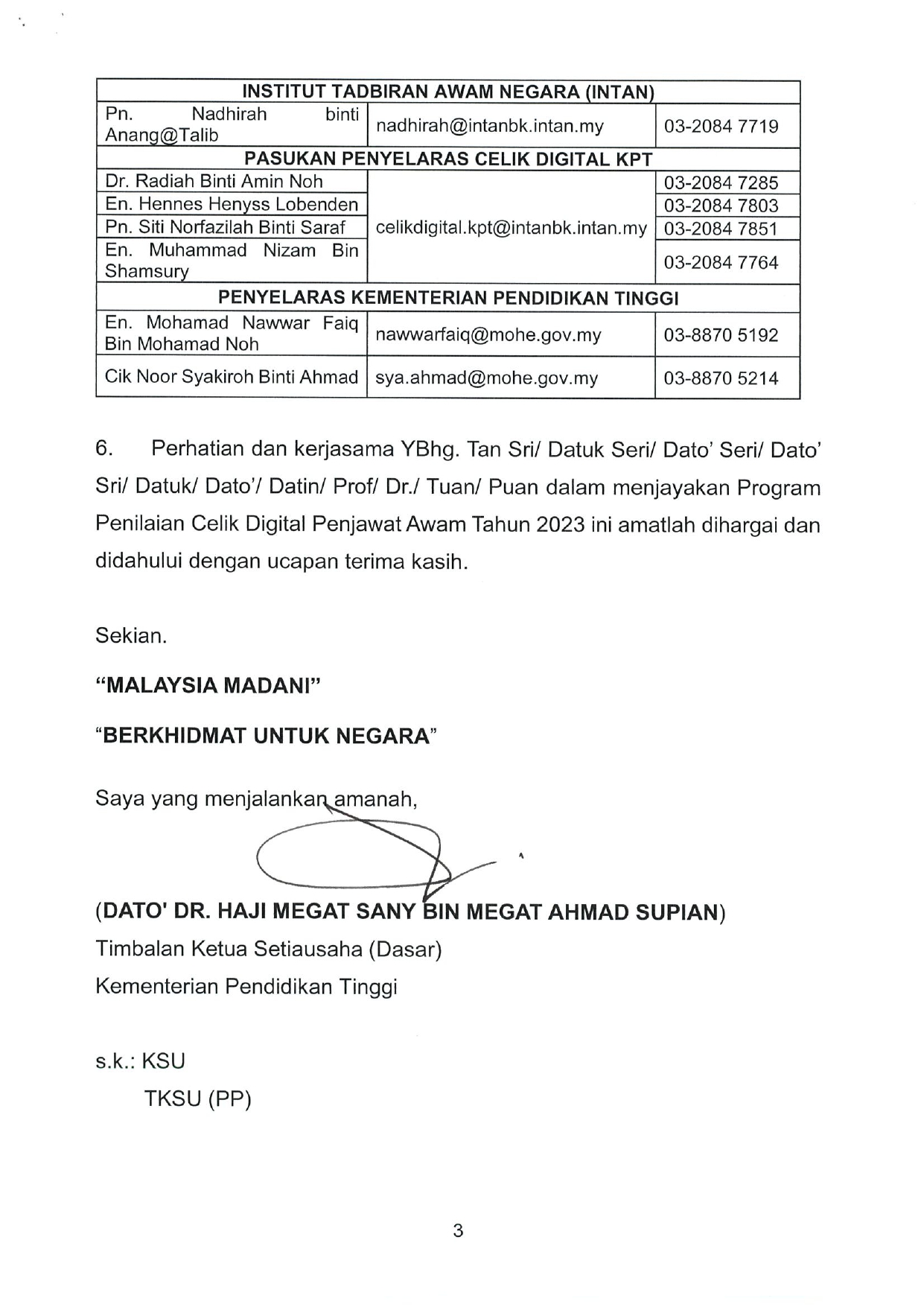 Sekiranya terdapat sebarang pertanyaan berhubung perkara ini, bolehlah menghubungi Puan Azliah Ahmad, Pembantu Tadbir (P/O) di talian 088-320000 samb. 202000.