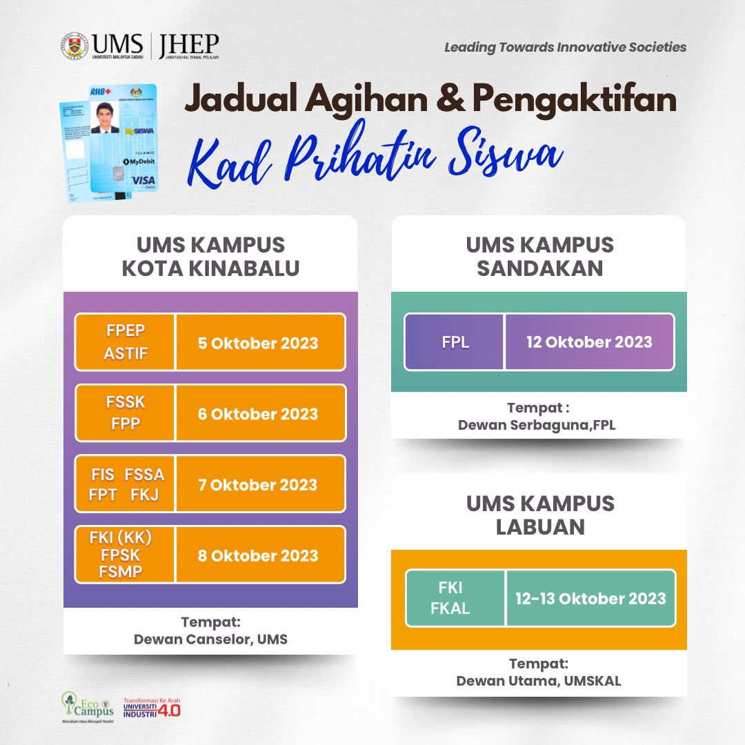 Jadual Agihan dan Pengaktifan Kad Prihatin Siswa Pelajar Baharu UMS Sesi 2023/2024